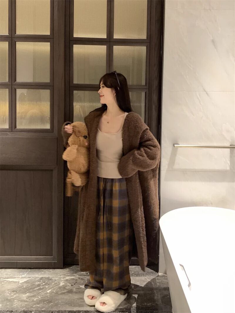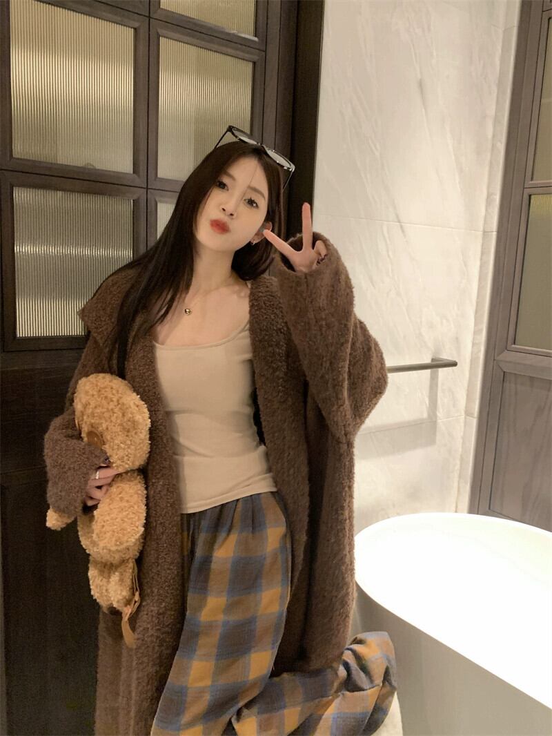 ブラウンフード付きセータージャケット女性秋と冬 2024 新しいメイラード着用ロングニットカーディガン怠惰なスタイル オータム 秋物 ウィンター 冬物 8571643283046921
