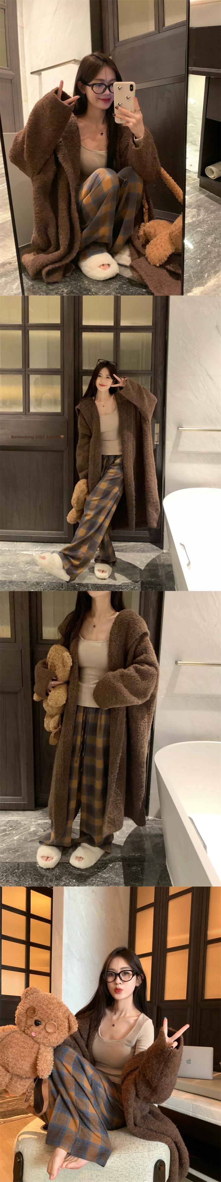 色:コーヒージャケット,長袖Tシャツ,ズボンをチェック