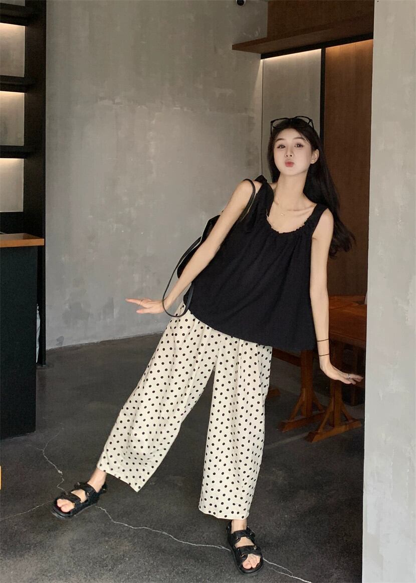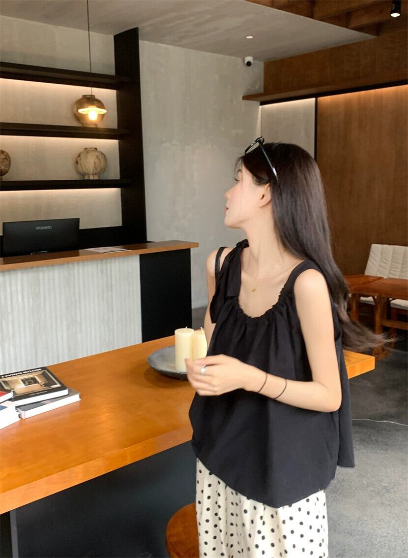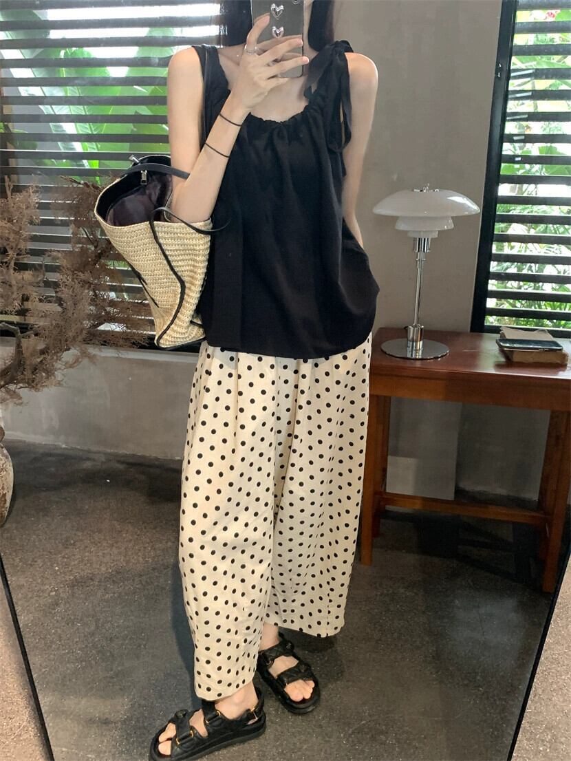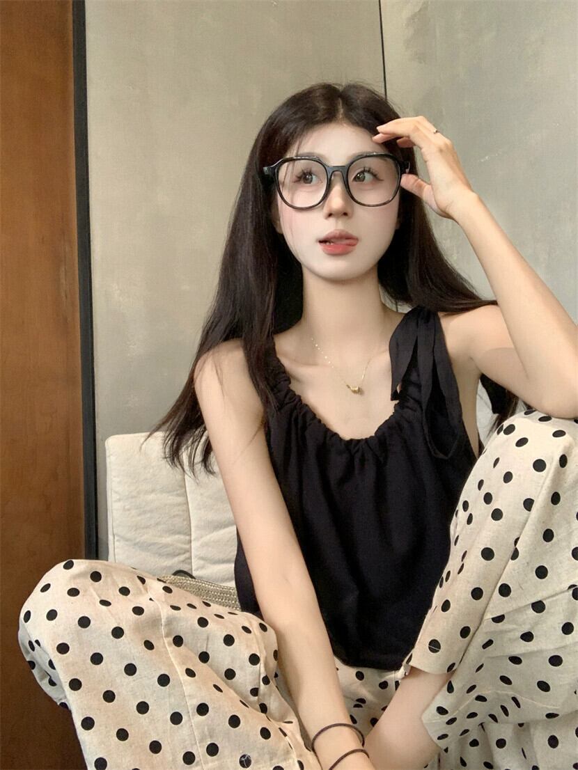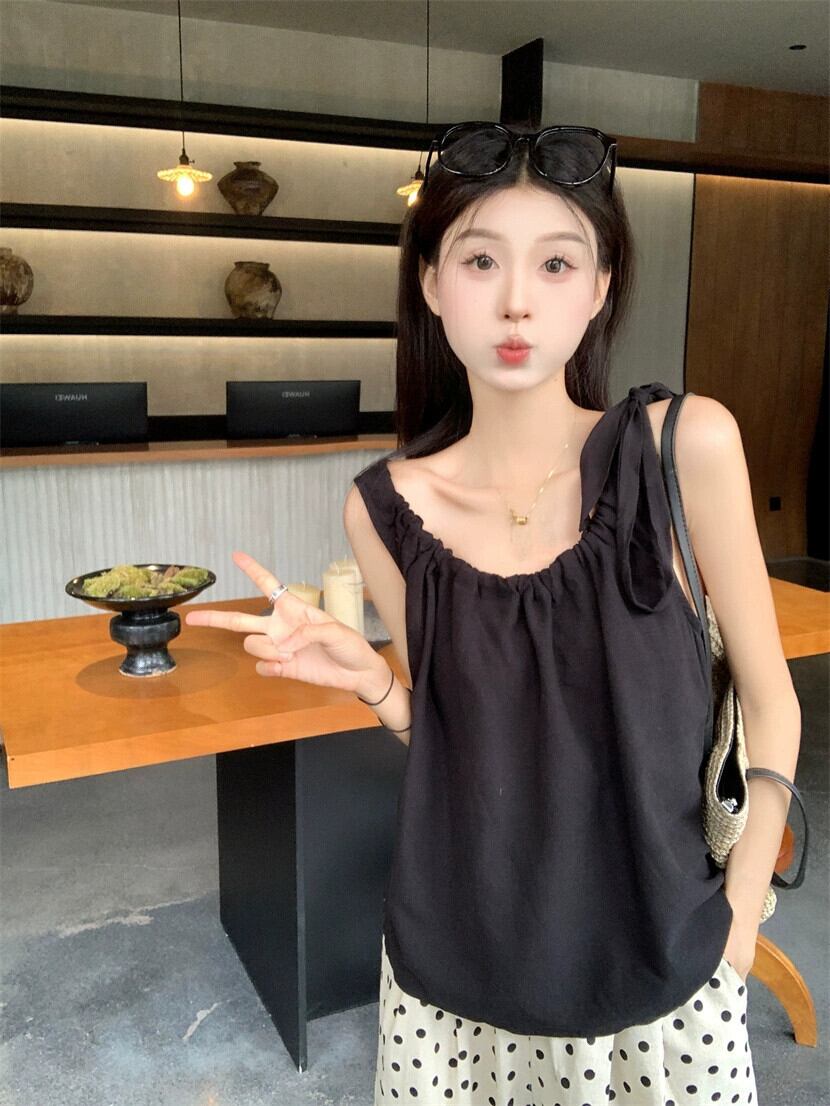 ブラックキャミソールレディースアウター2024夏フレンチスイート&シックユニークなノースリーブレースアップトップ 大人ガーリー スウィート キュート カジュアル サマー 夏物 8571638353387536