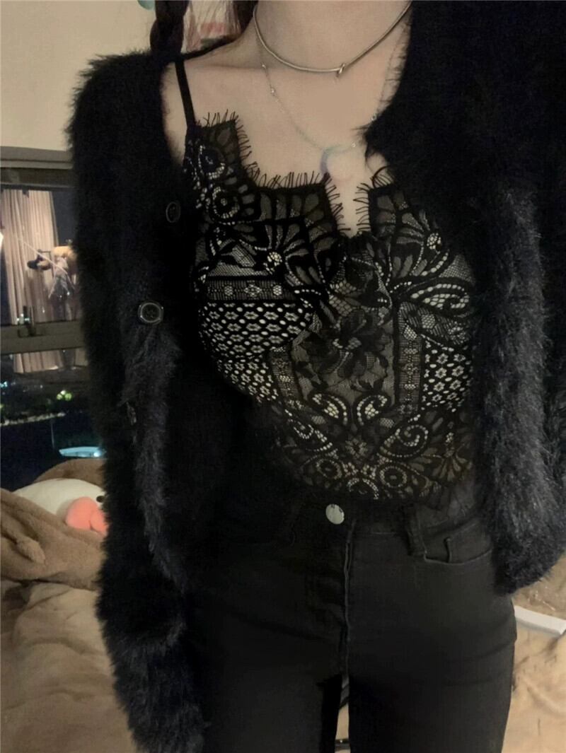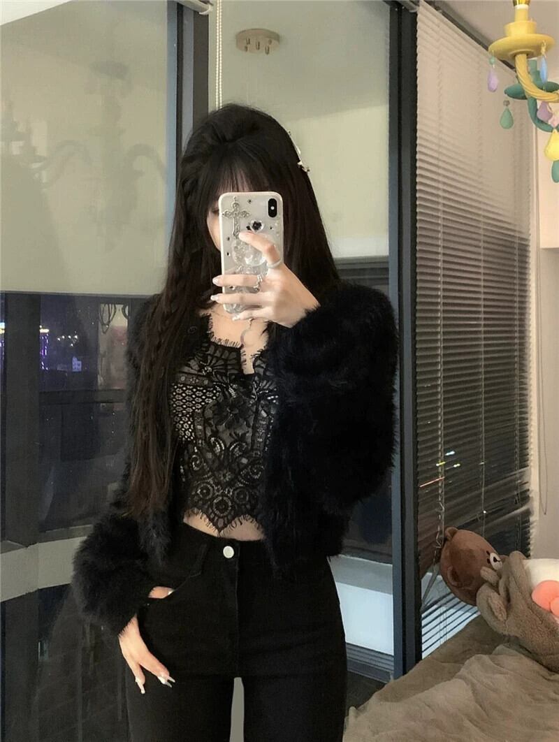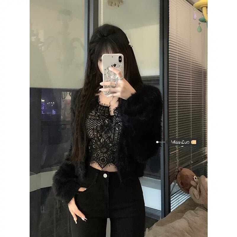 模造ミンクベルベットショートセータージャケット女性、スタイル怠惰なスタイル秋と冬の小人ハイエンド黒ニットカーディガン ブラック オータム 秋物 ウィンター 冬物 8571613781229335