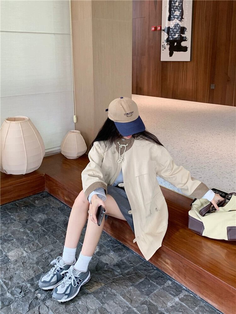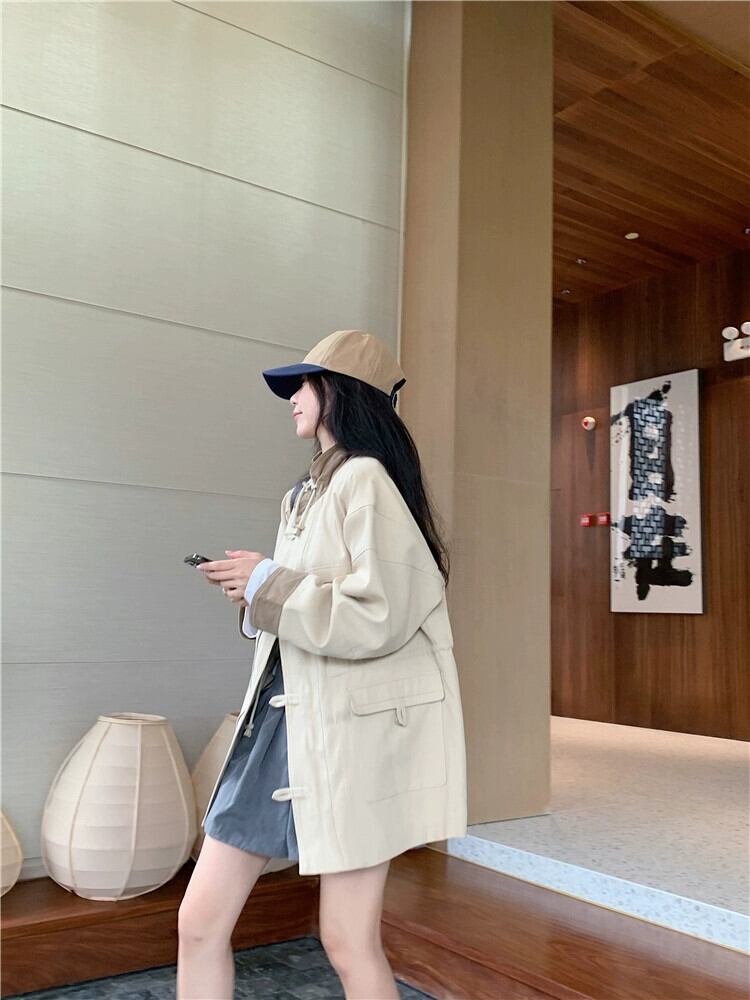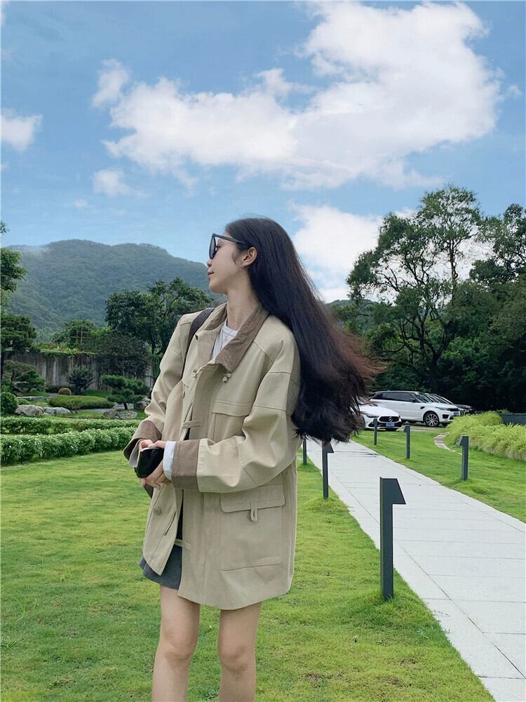 ミルキーブラウン作業服ウインドブレーカージャケット女性秋 2024 新しいスタイル今年の人気のある eign スタイルの小さなミドル丈コート オータム 秋物 8571628645138315