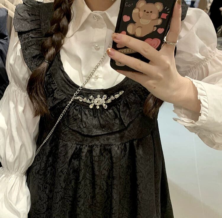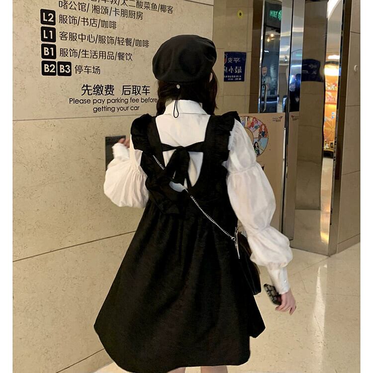 黒サスペンダースカートプリンセスドレスレディース2024年秋新作甘い初恋超美形人形ショートスカート ブラック 大人ガーリー スウィート キュート カジュアル オータム 秋物 8571679953147493