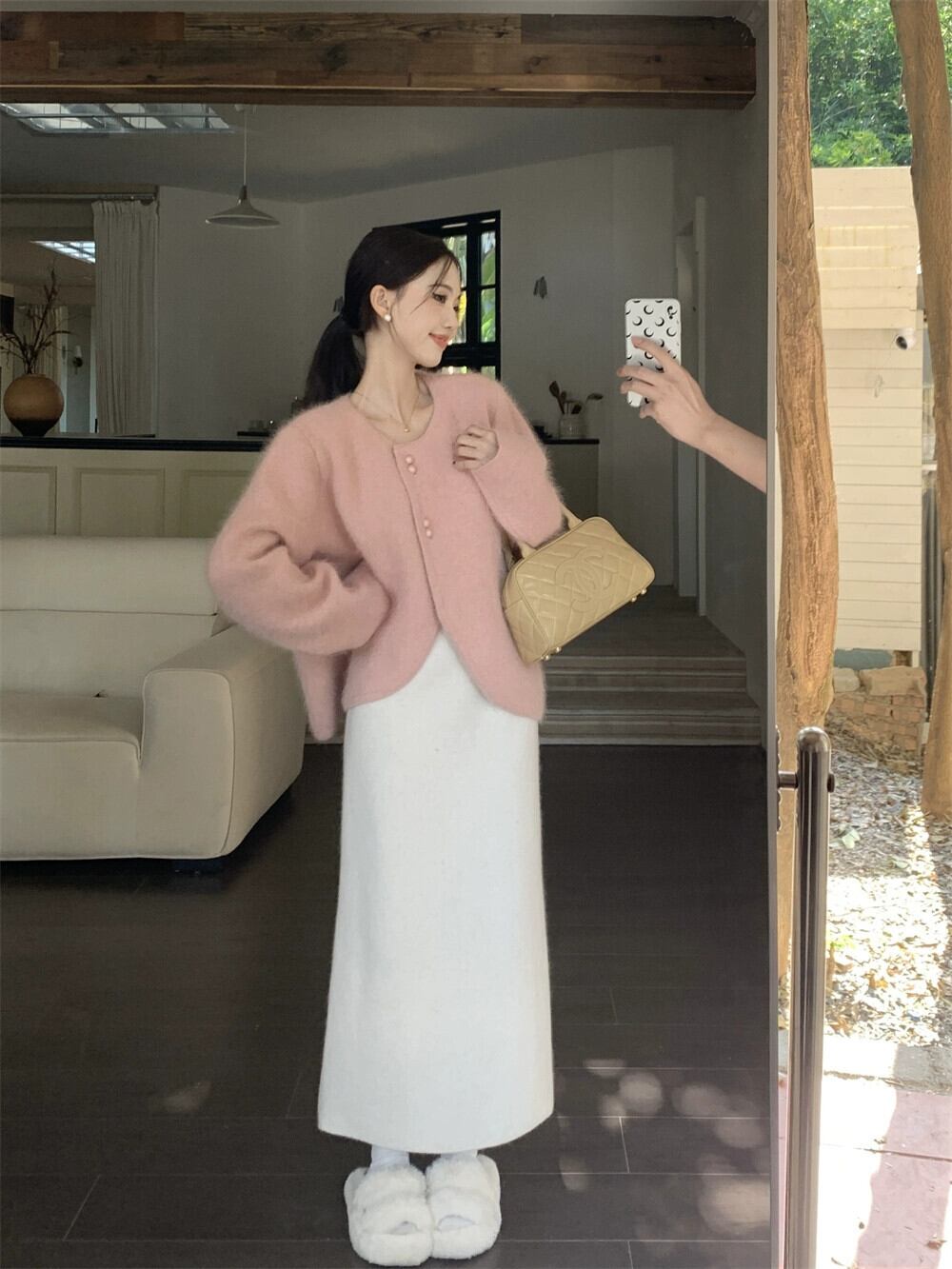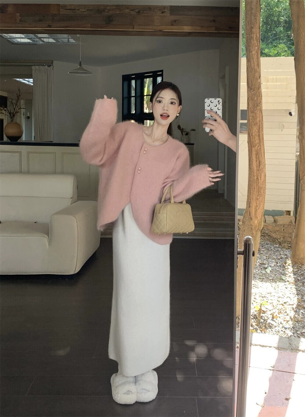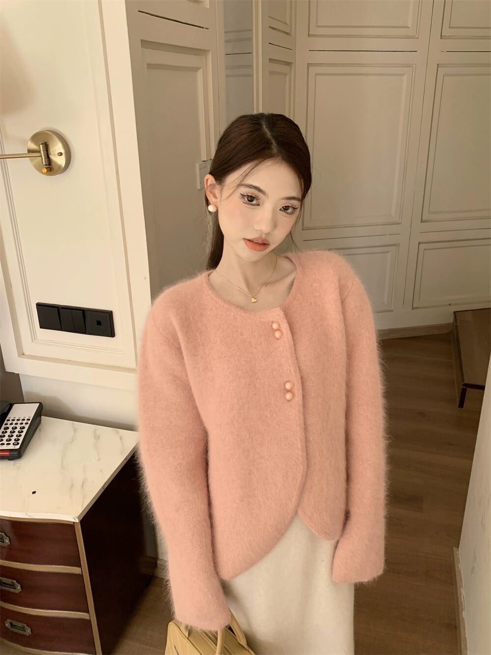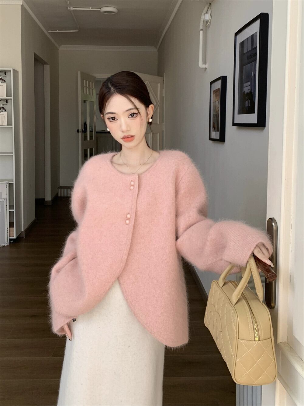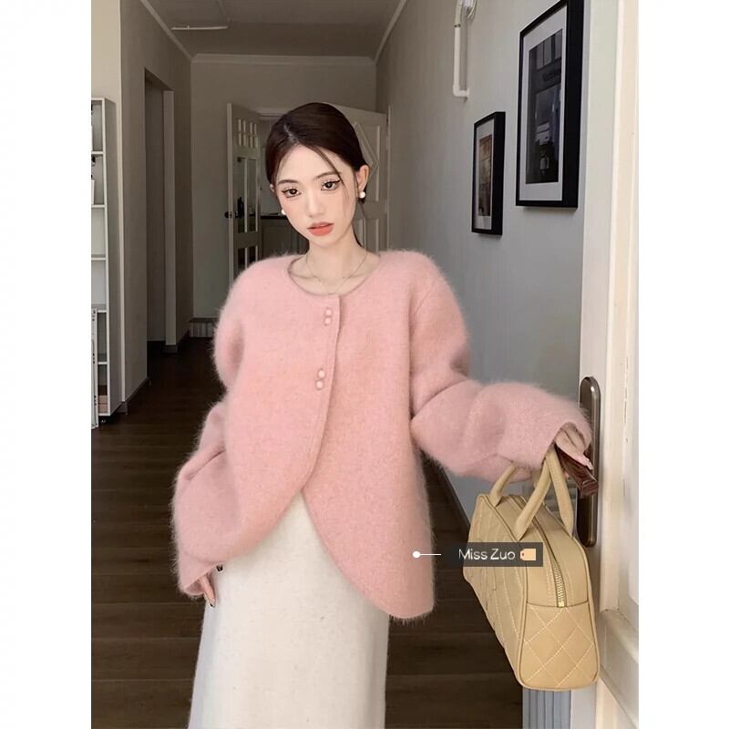 ピンク模造ミンクベルベットセータージャケット女性の秋冬 2024 新しいスタイル優しくて超美しい不規則なニットカーディガン オータム 秋物 ウィンター 冬物 8571676387547983