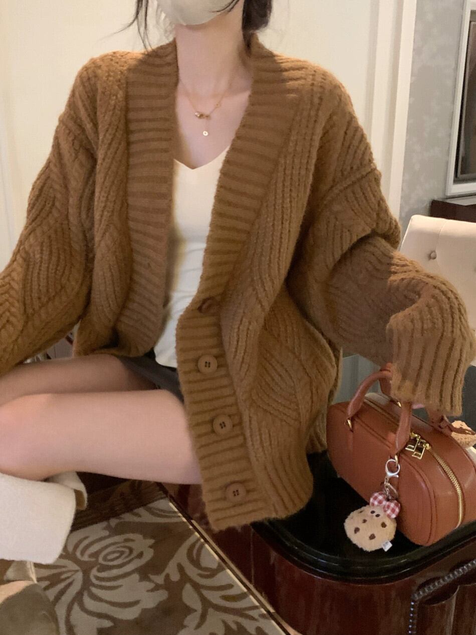 レトロソフトワクシーツイストセータージャケット女性秋と冬 2024 新しい怠惰なスタイル肥厚シングルブレストニットカーディガン オータム 秋物 ウィンター 冬物 8571669741977729