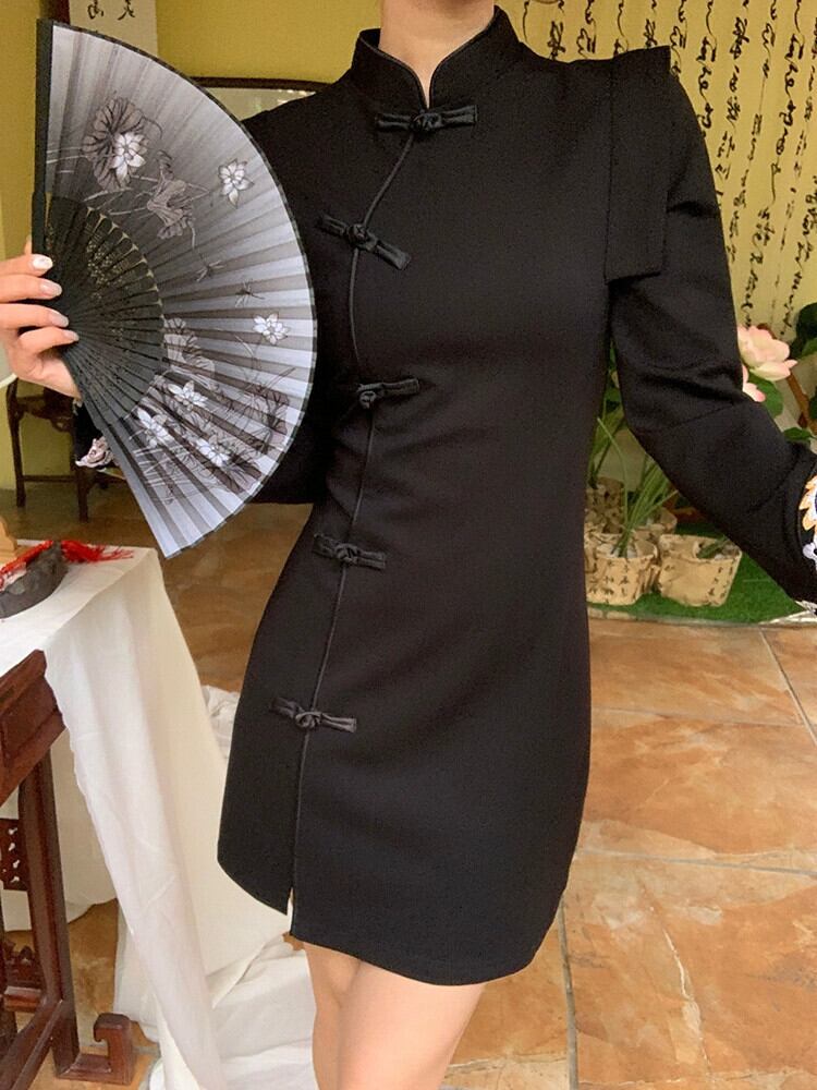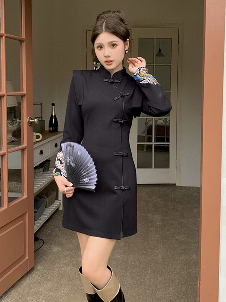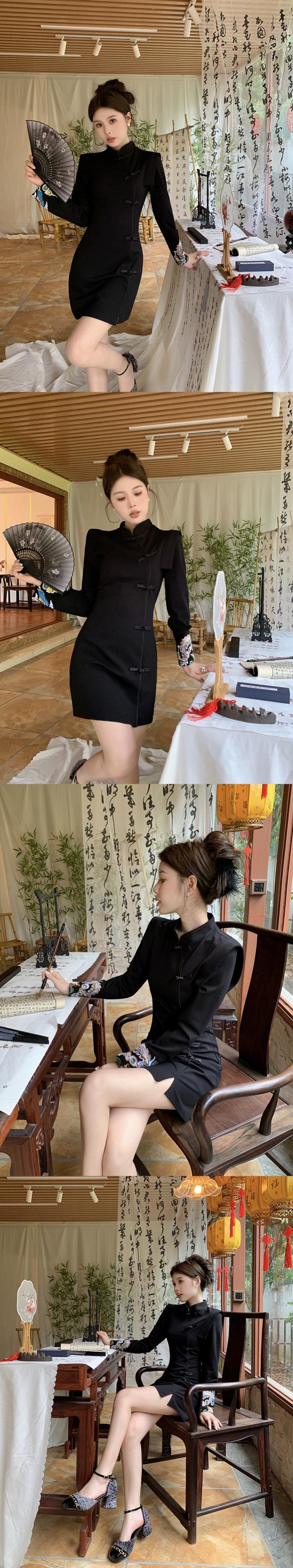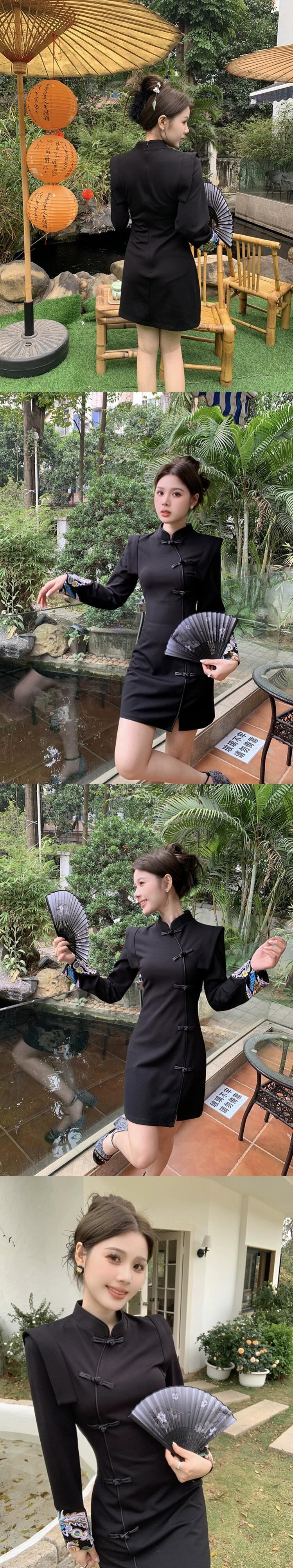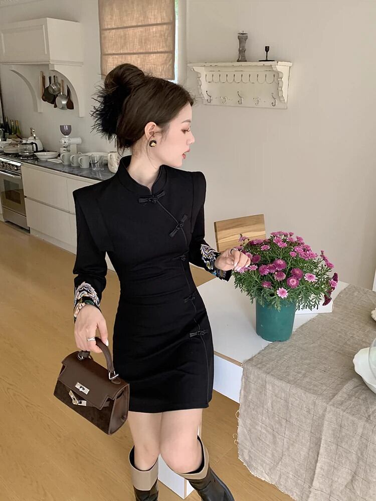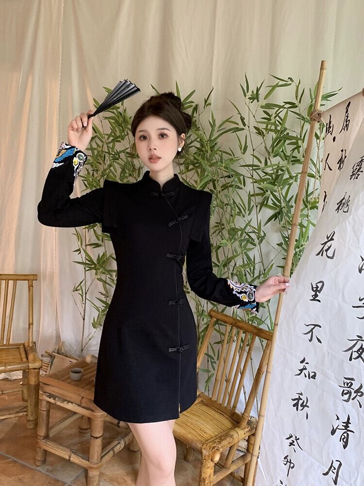 中国風の国民風の黒のドレスの女性の春 2024 新しいニッチデザインウエスト痩身国民の魅力ショートスカート ブラック スプリング 春物 857163581216749