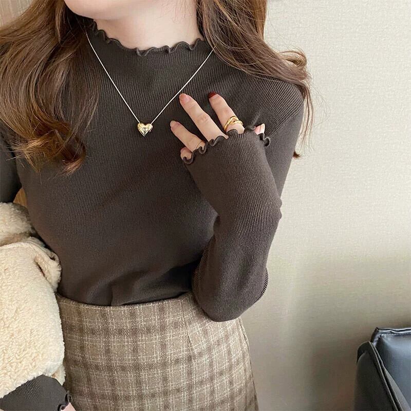 ハーフタートルネックインナーボトシャツ女性の秋と冬 2024 新しいスタイル菌エッジセーター白ニットセーター長袖トップ ロング ホワイト オータム 秋物 ウィンター 冬物 8571692462915667