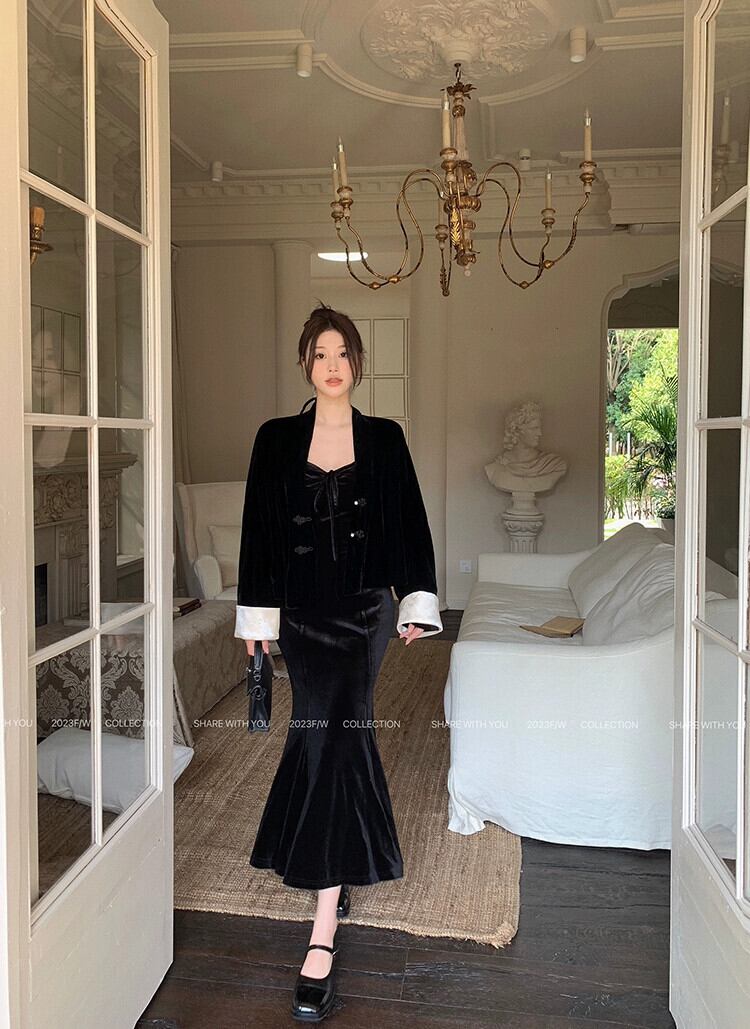 中国風の国民風のベルベットのジャケットの女性の2024年秋冬の新しいハイエンドで超格好良い気質のショートボタントップ オータム 秋物 ウィンター 冬物 8571620482995959
