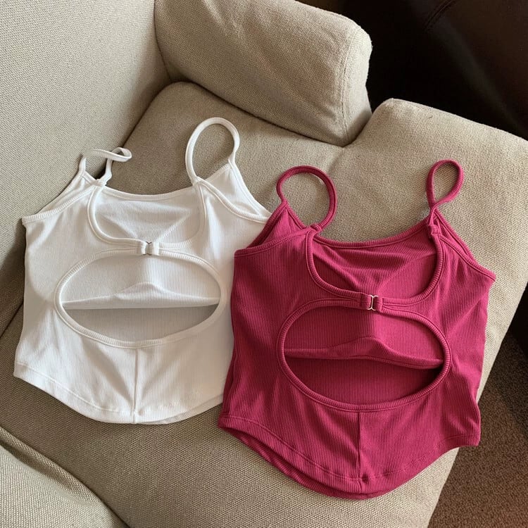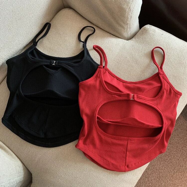 香港スタイルのシックなスタイルの背中の開いたキャミソール女性の夏の新しいニッチデザイン純粋な欲望スリムノースリーブトップ サマー 夏物 ピュア 8571641654505198