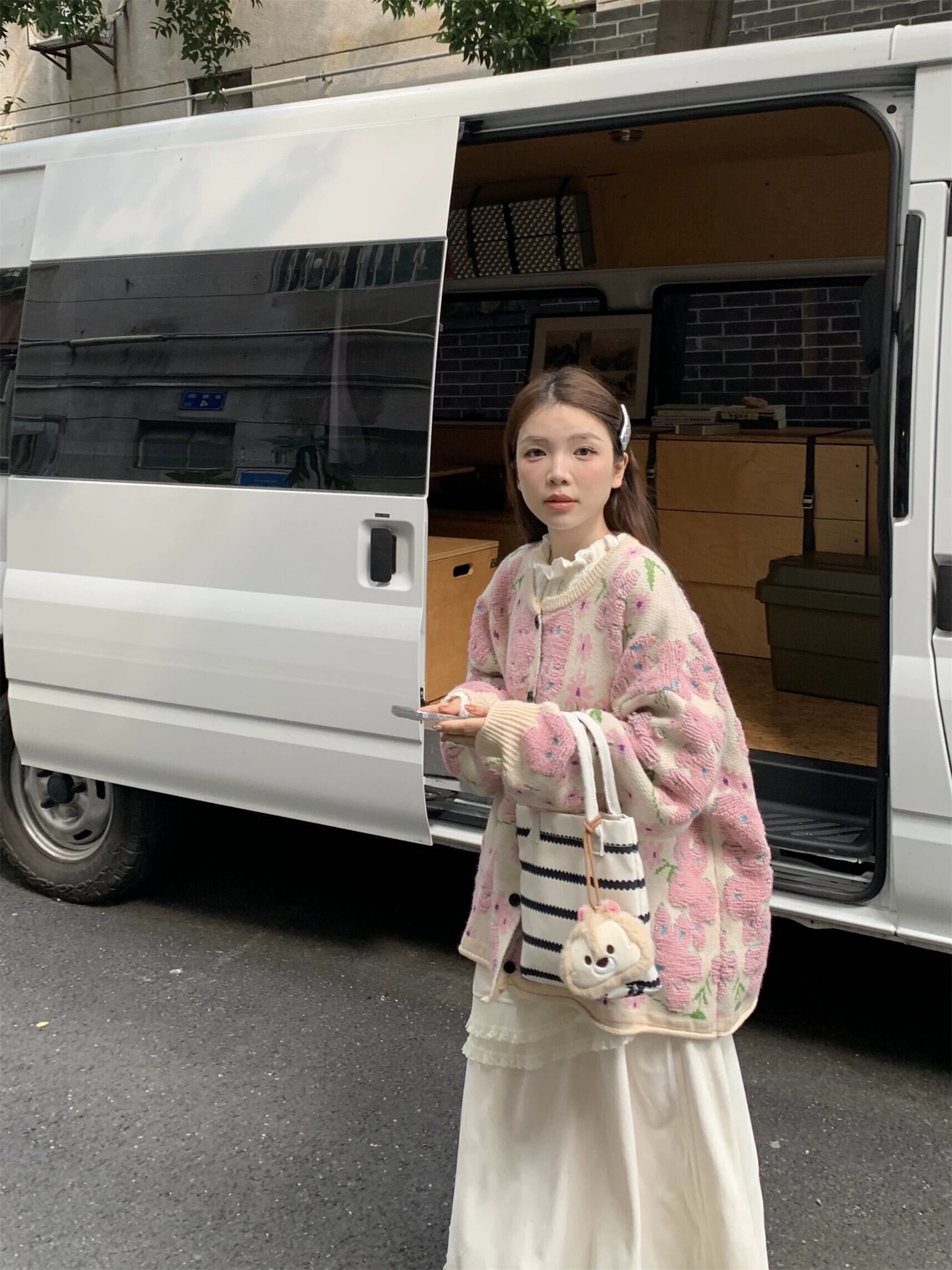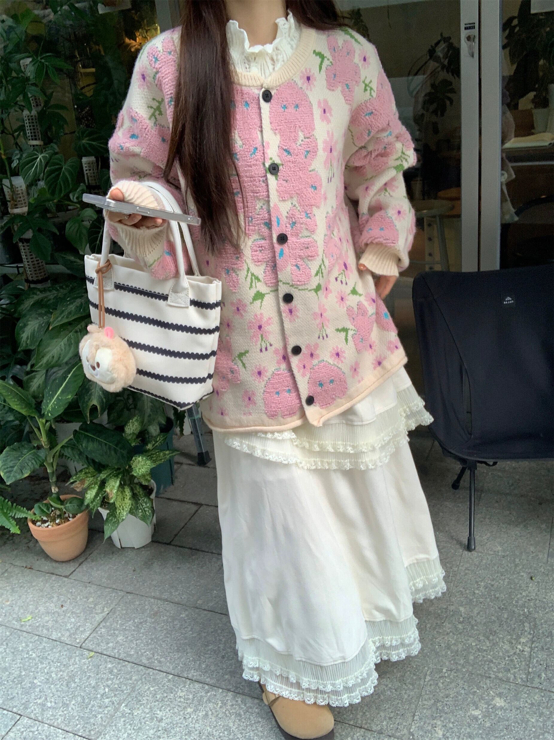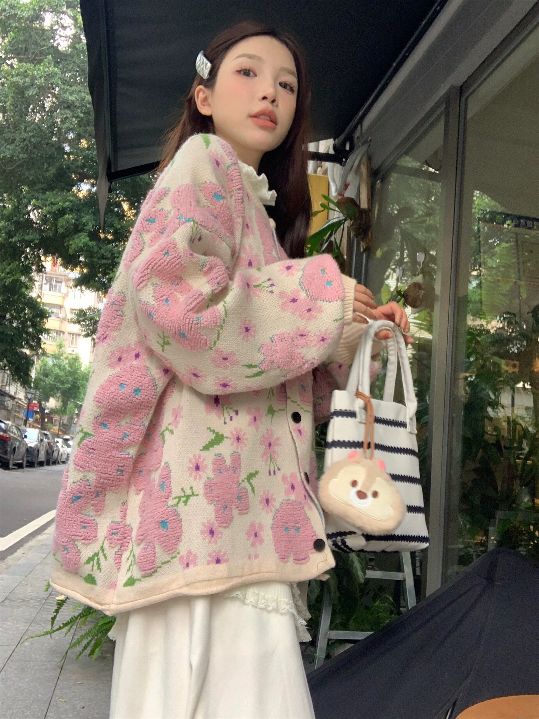 Xiaoxiangfeng ピンク植毛フラワーセーターカーディガン女性の秋と冬の柔らかく甘い気質多目的セータージャケット 大人ガーリー スウィート キュート カジュアル オータム 秋物 ウィンター 冬物 フラワーデザイン 8571656562913601