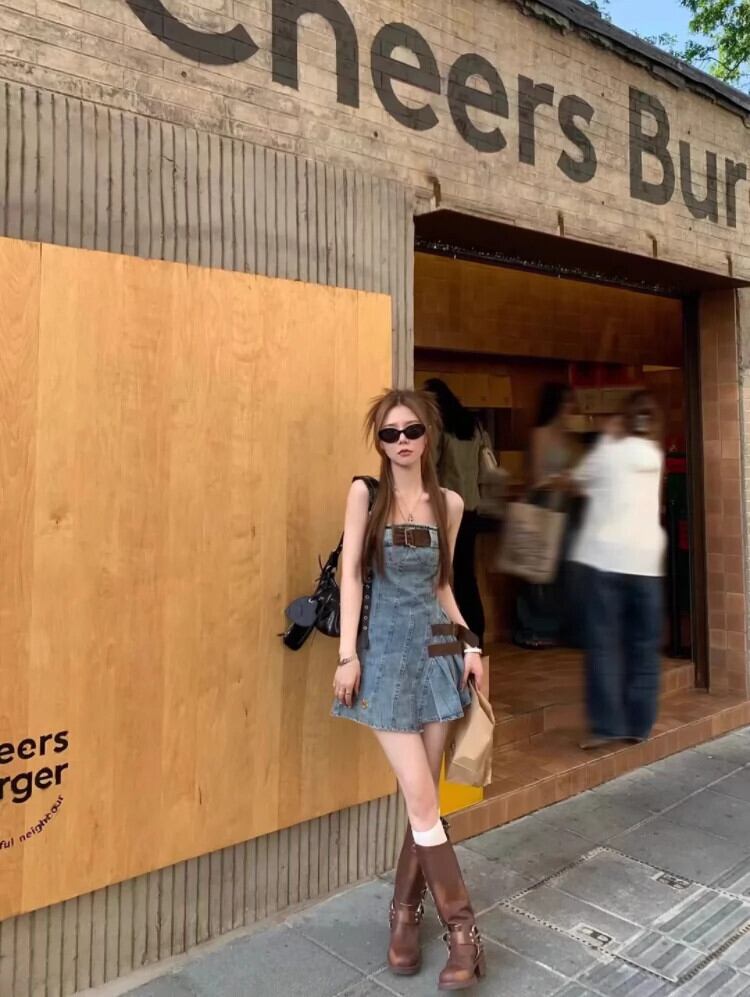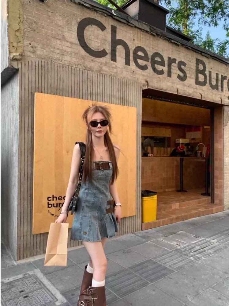 レトロホットガールウォッシュデニムドレス女性の春と秋のスリムウエストスリムエンドスイートスパイシーサスペンダースカート 大人ガーリー スウィート キュート カジュアル スプリング 春物 オータム 秋物 8571684885144076