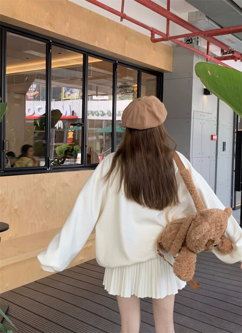 色:アプリコットスウェットシャツ,チェリーピンクのスウェットシャツ,アプリコットスカート,グレースカート