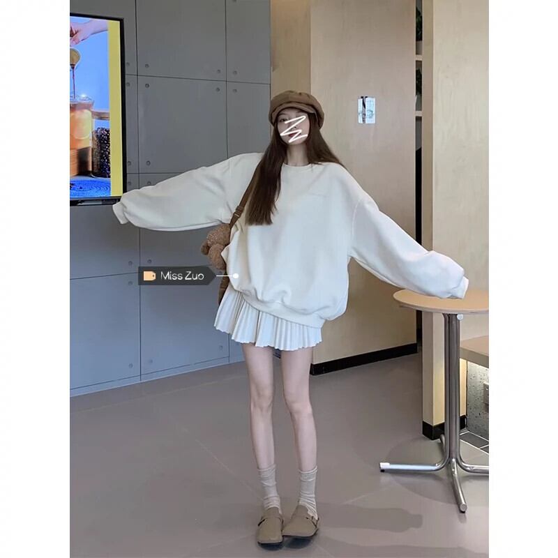 刺繍文字ラウンドネックスウェットシャツ女性 2024 春の新バージョン小さな多用途ルーズカジュアル長袖トップ ロング レッド スプリング 春物 Oネック 8571666215629011