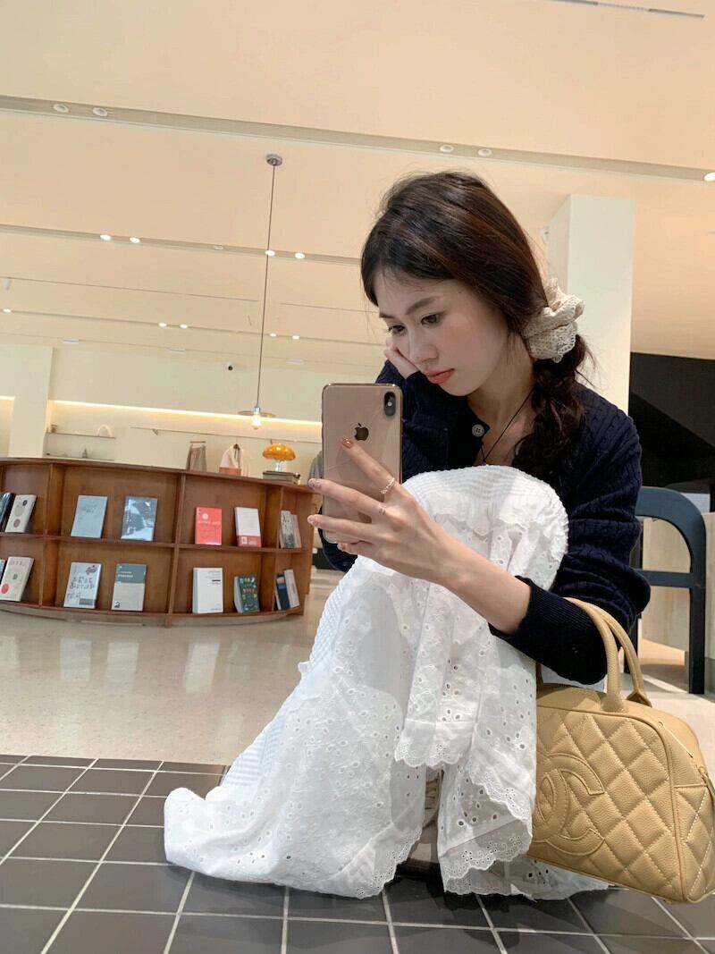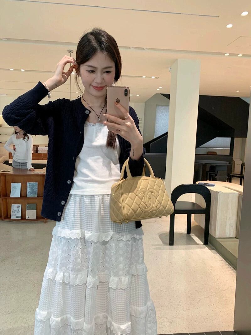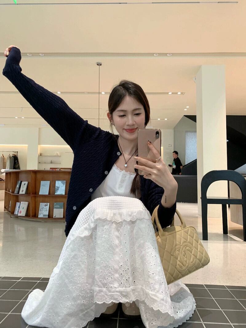白いスカートの女性春 2024 新しいハイウエスト a ラインミッドレングス優しい風プチレースケーキスカート ホワイト スプリング 春物 Aライン 8571648334231027