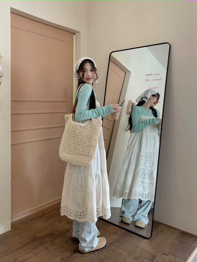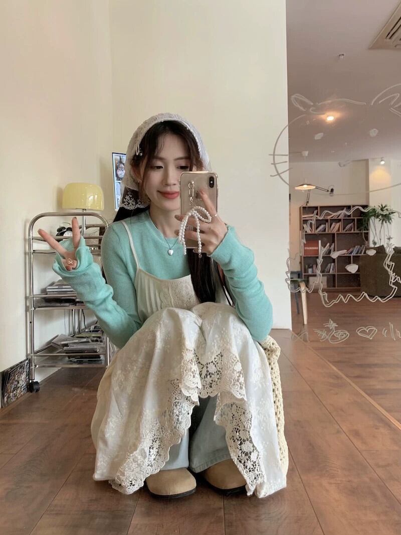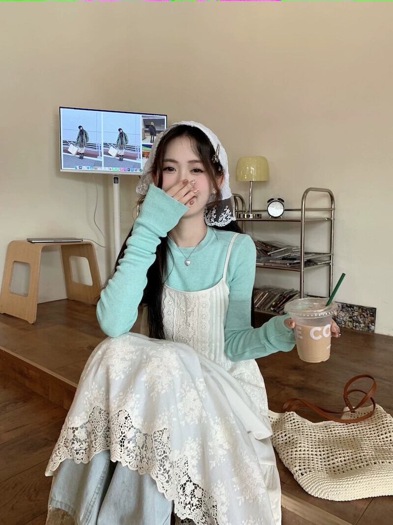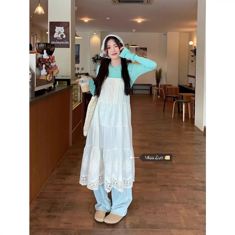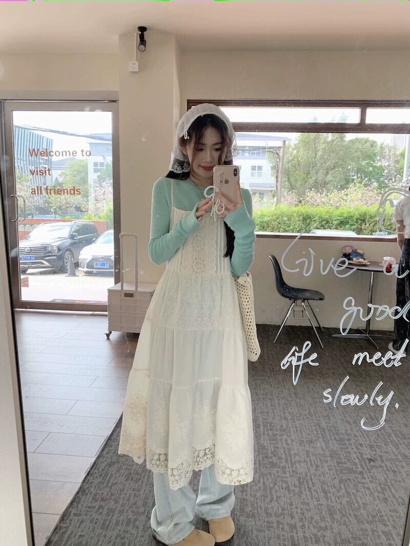 重工業レースサスペンダードレス女性春 2024 新しいスタイルのハイエンドレイヤードホリデーロングスカート レッド スプリング 春物 8571621170041204