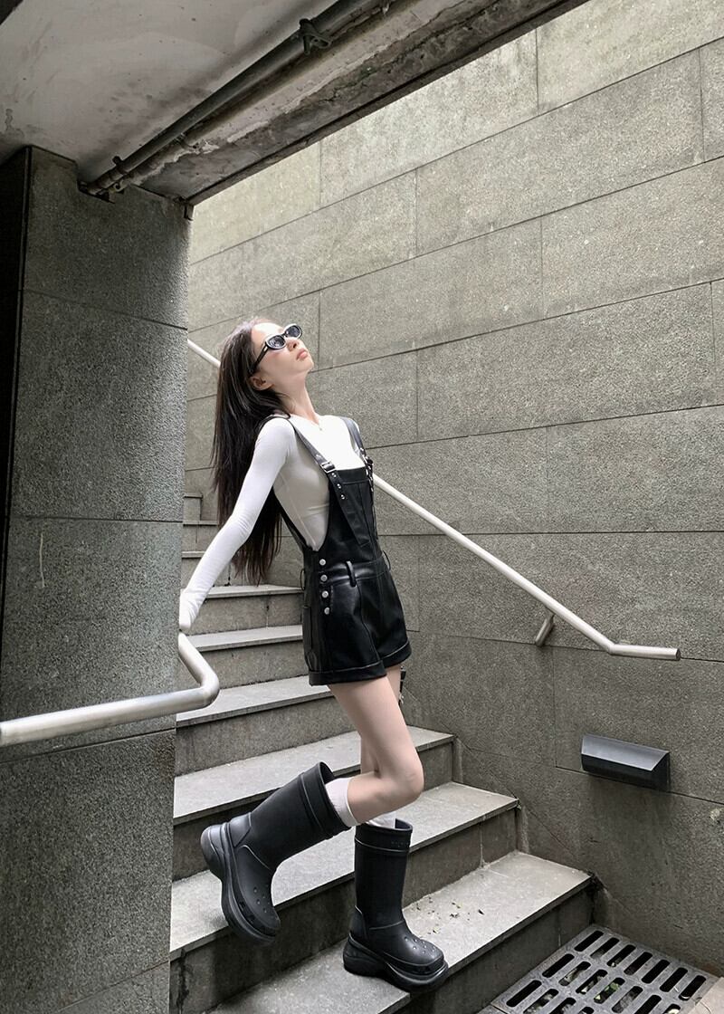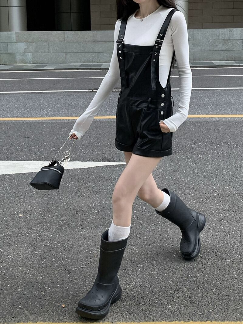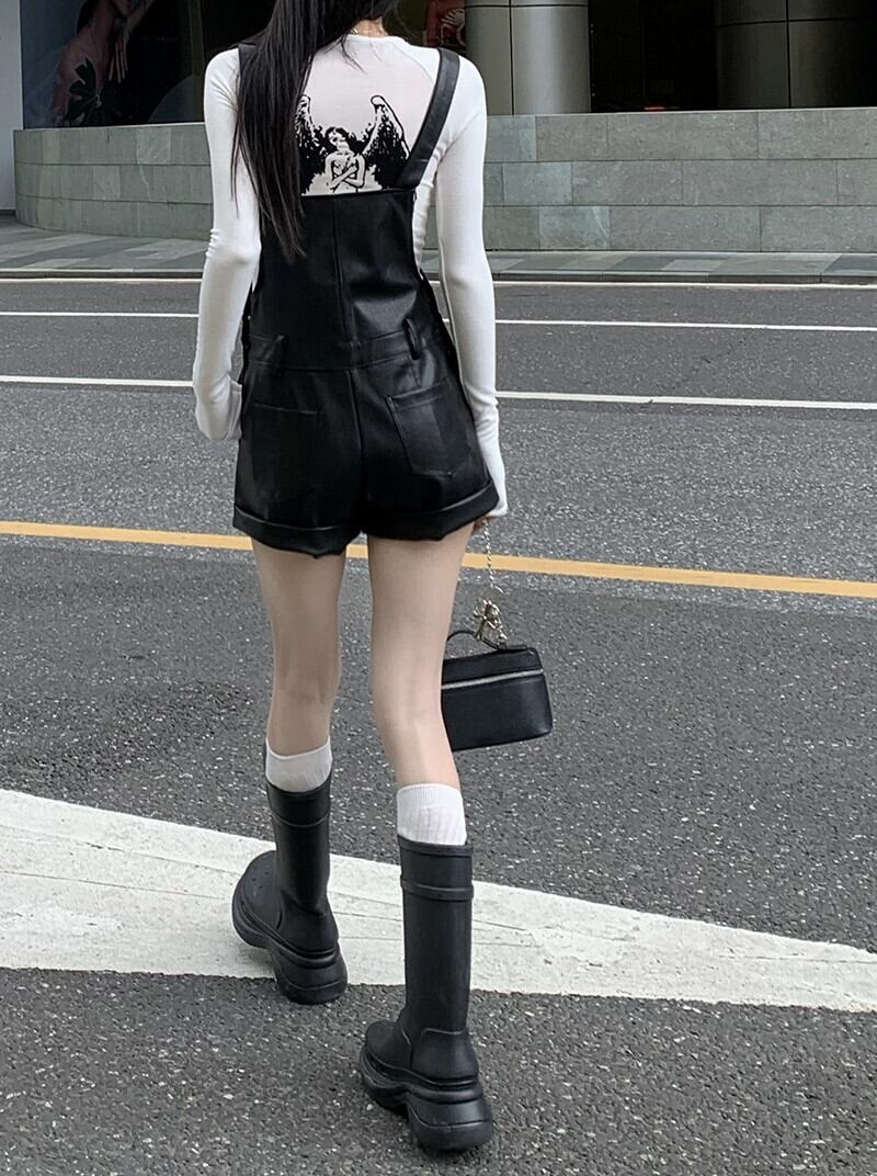 メイラード黒 pu レザーオーバーオールショートパンツ女性春と秋 2024 新しいスタイルの小さな黒のジャンプスーツ ブラック スプリング 春物 オータム 秋物 ショーツ ブルマー 8571647800432762