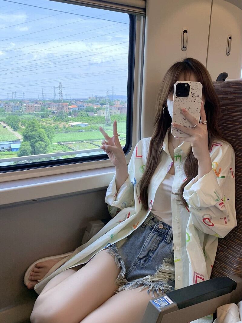 エドレタープリントシャツカーディガン女性秋2024新しいスタイルルーズ多用途ニッチシャツトップス オータム 秋物 8571687104967820
