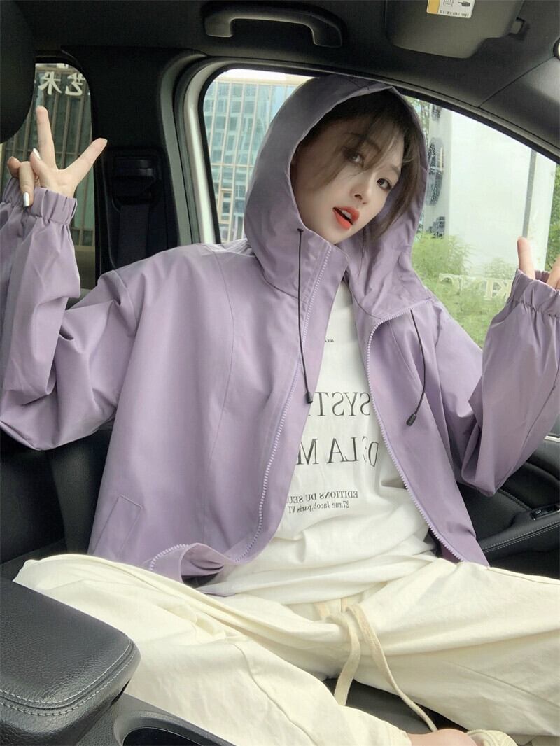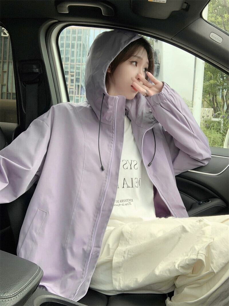 ジャケット日焼け防止ミッドレングスジャケット女性 2024 年春の新しいルーズで多用途なカジュアルフード付きファッショントップ スプリング 春物 8571692546725469