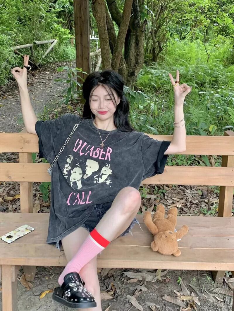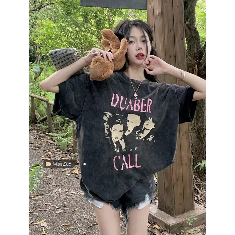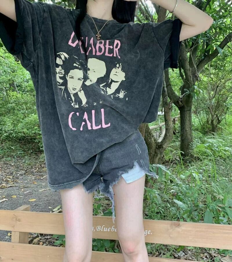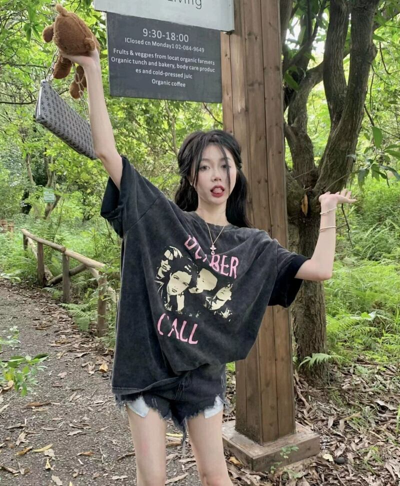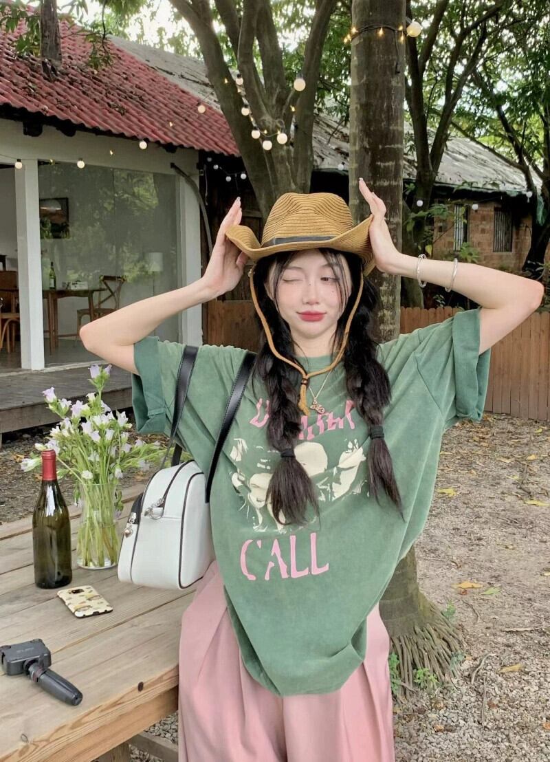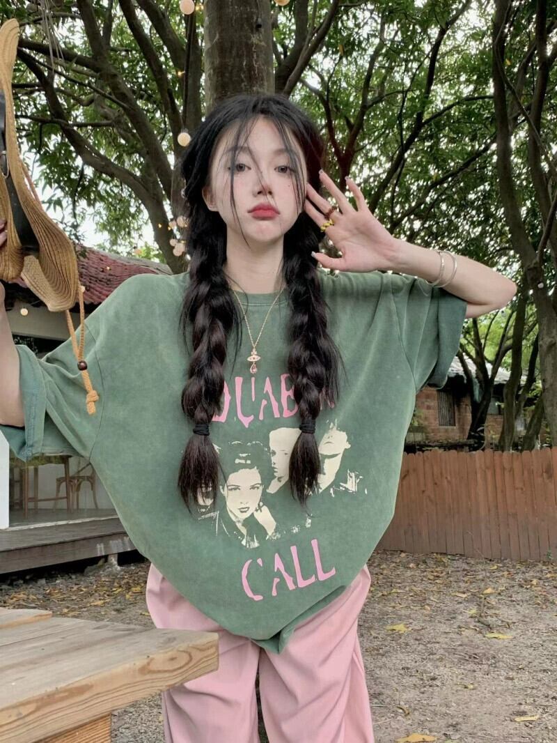 グリーン半袖 Tシャツレディース夏デザインニッチ 2024 新しいアメリカンレトロミッドレングス半袖トップ サマー 夏物 8571632241766336