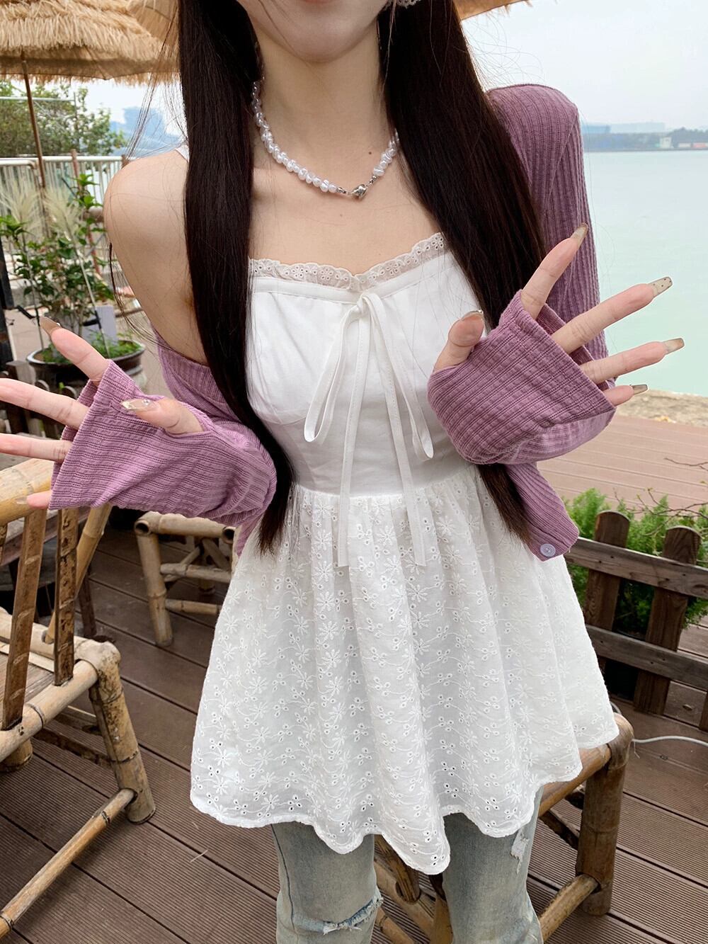 純粋な欲望のレースの小さなキャミソール女性の夏の 2024 新しいスリムなショート スタイルのトップスは外で着用します サマー 夏物 8571659699559168