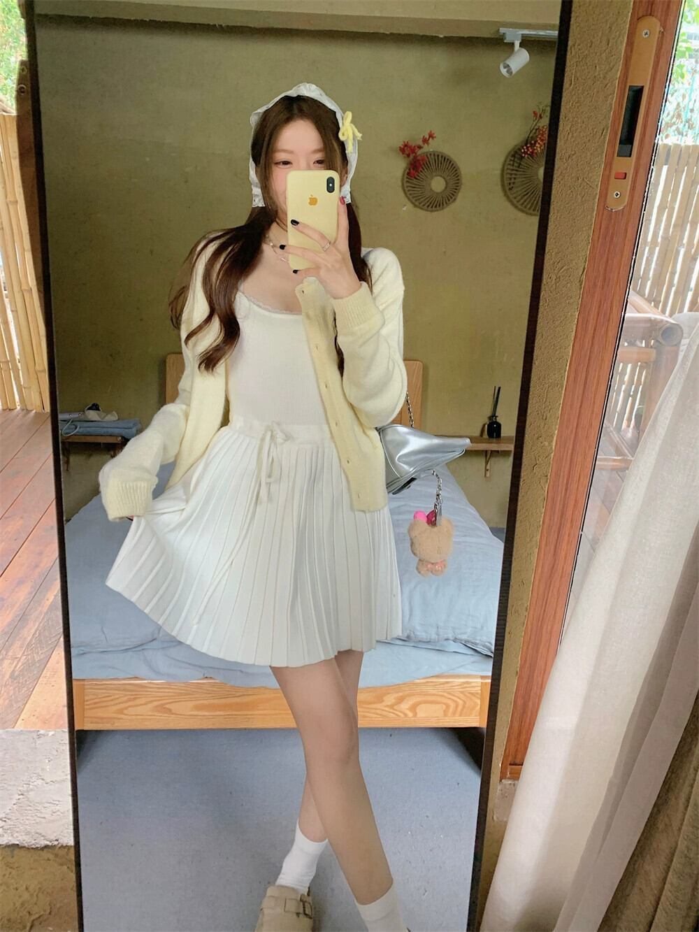 フレンチスイートニットレースサスペンダードレス女性夏2024新年齢削減スリムフィットAラインスカート 大人ガーリー スウィート キュート カジュアル サマー 夏物 8571611878106505