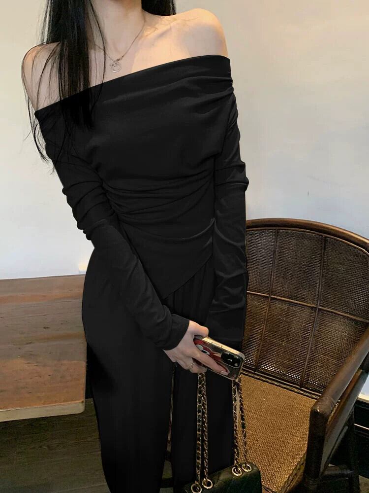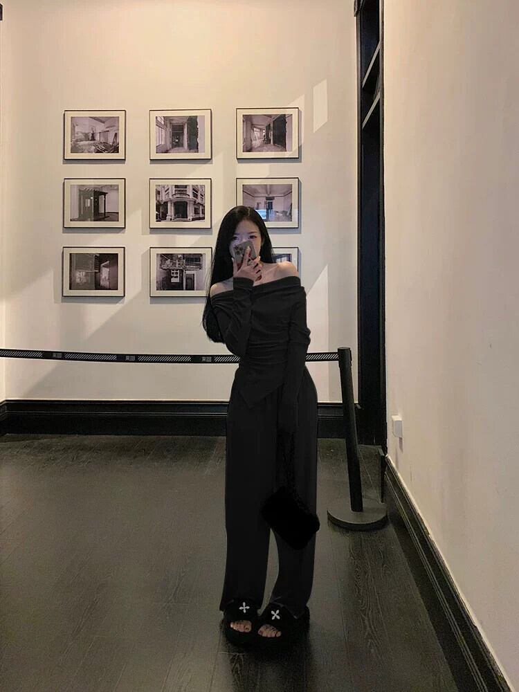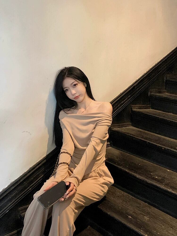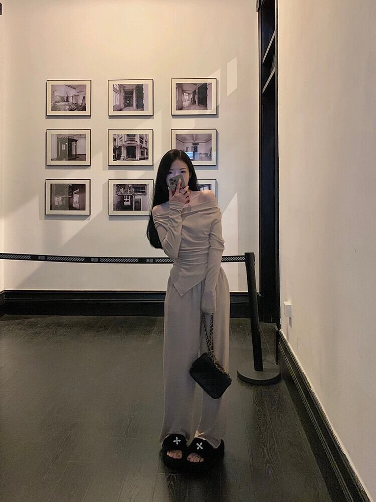 純粋な欲望ネクタイチューブトップワンショルダートップ女性の夏 2024 新しいスタイル不規則なボトムシャツ長袖 T シャツ ロング サマー 夏物 Tシャツ 85716916444424