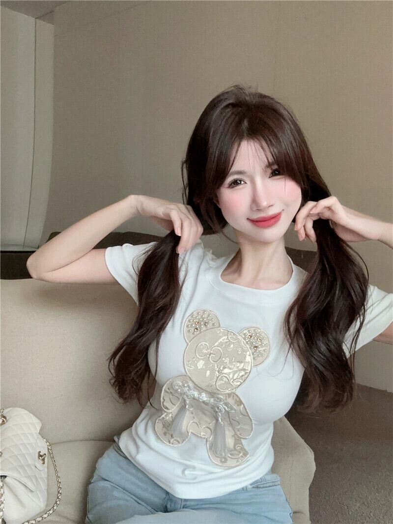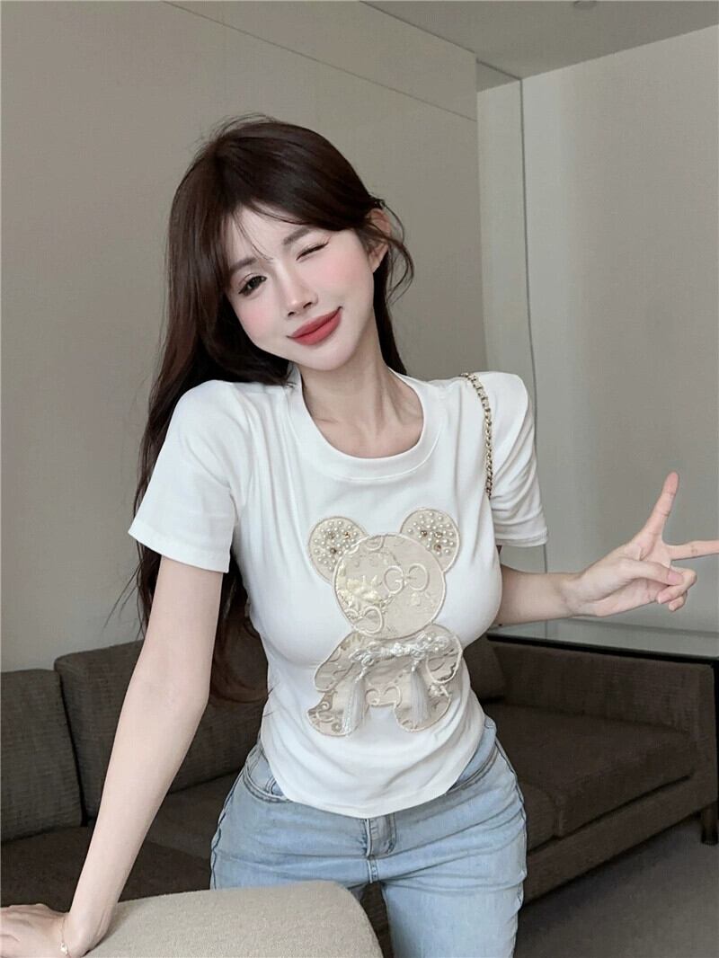 重工業ビーズクマ半袖 Tシャツ女性の夏 2024 新デザイン新中国風のボタントップ サマー 夏物 8571627270142980
