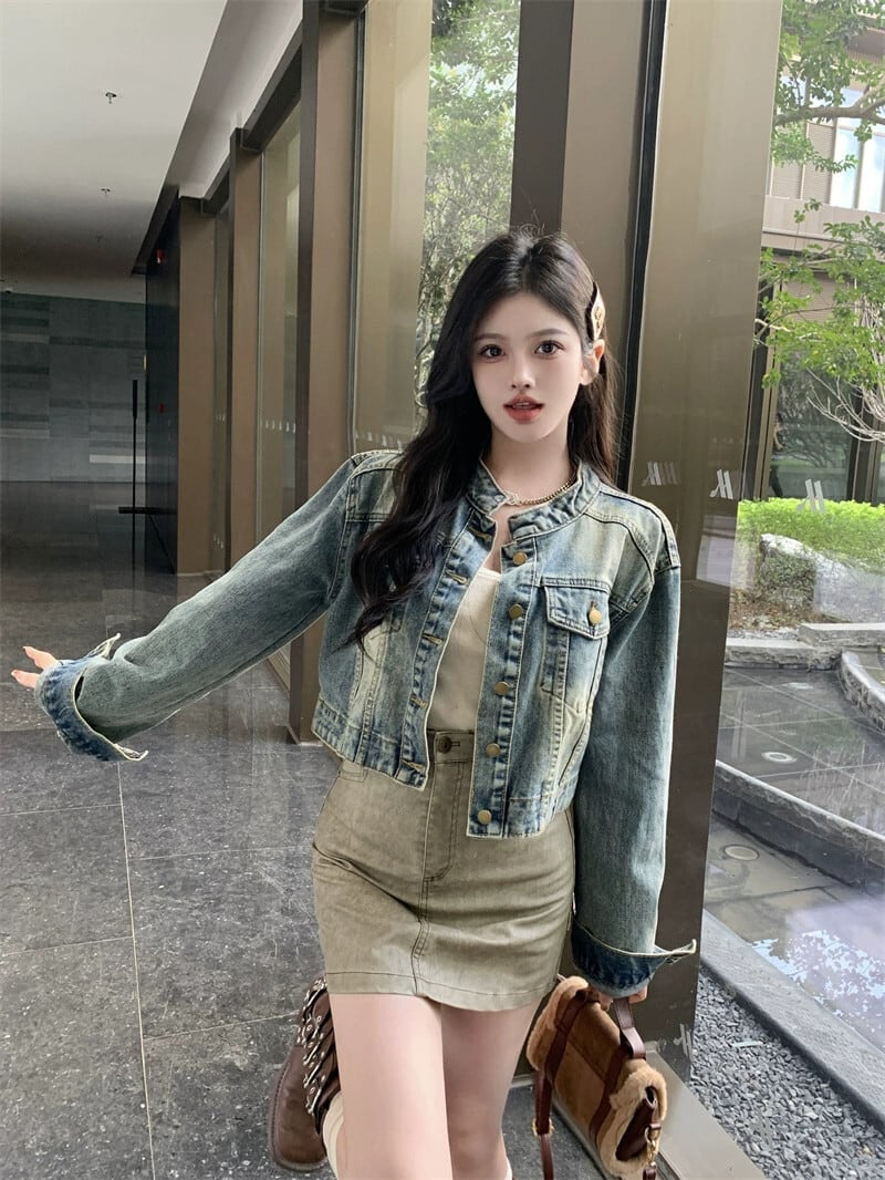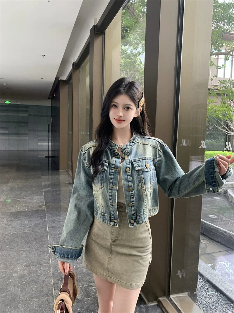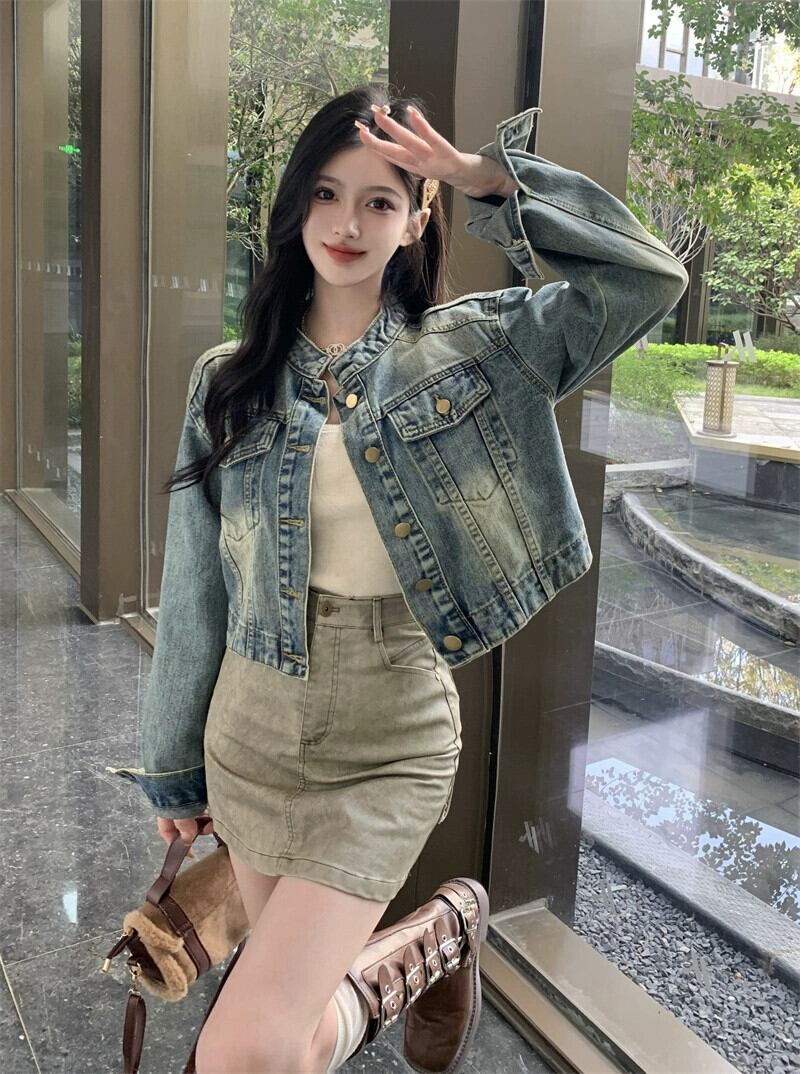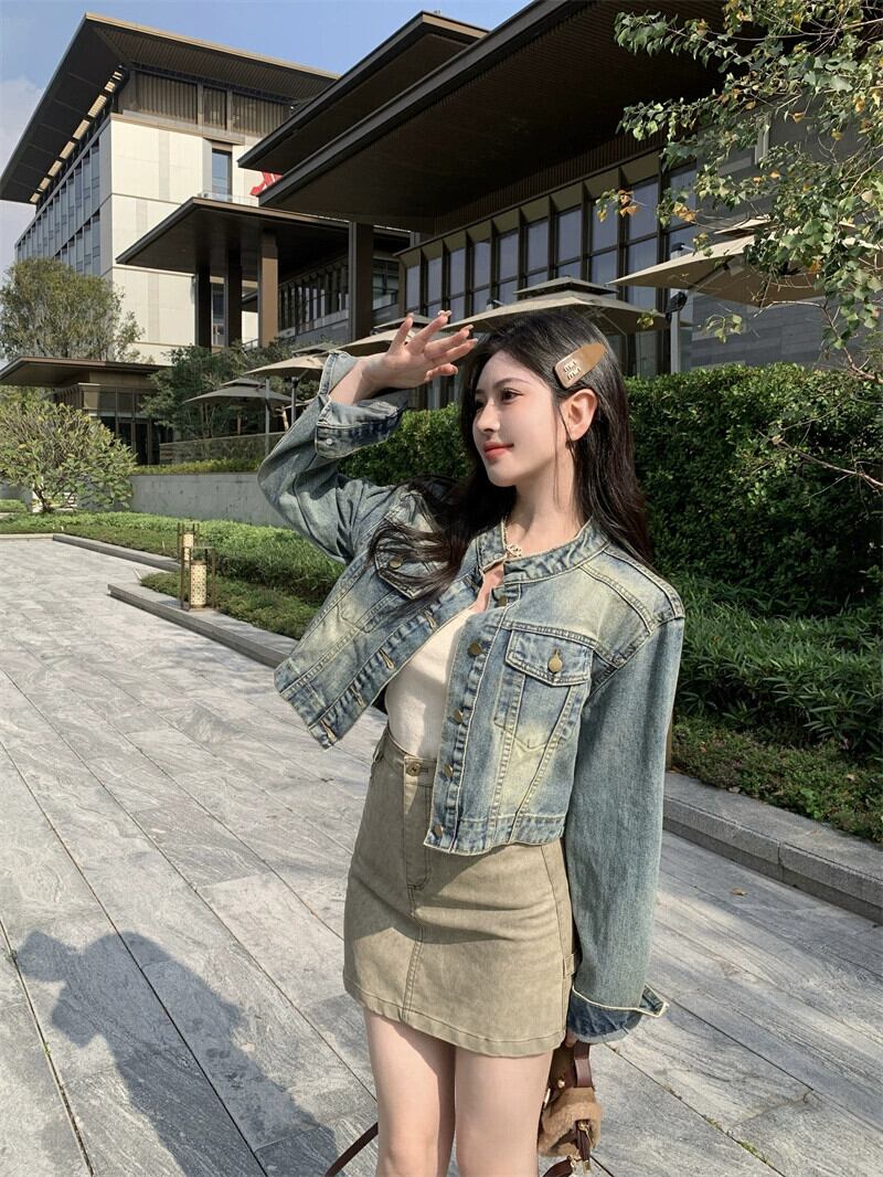 アメリカンデニムジャケットの女性の春 2024 新しい香港スタイルのレトロシックなカジュアルオールマッチショートジャケットトップ スプリング 春物 8571639515047844
