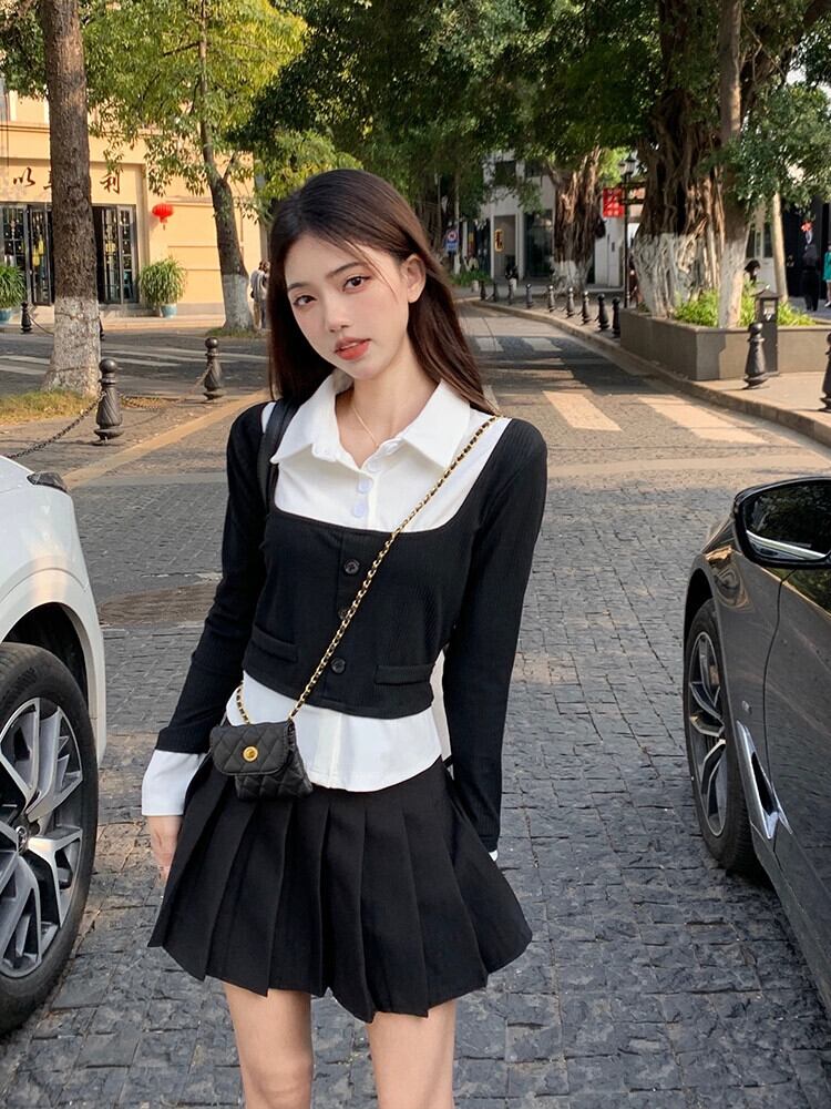 フェイクツーピースシャツの女性、春のデザイン、ニッチ、純粋な欲望、甘いネクタイ、セクシーなショートトップ、ユニークでユニークなシャツ 大人ガーリー スウィート キュート カジュアル スプリング 春物 ピュア 8571648289615910