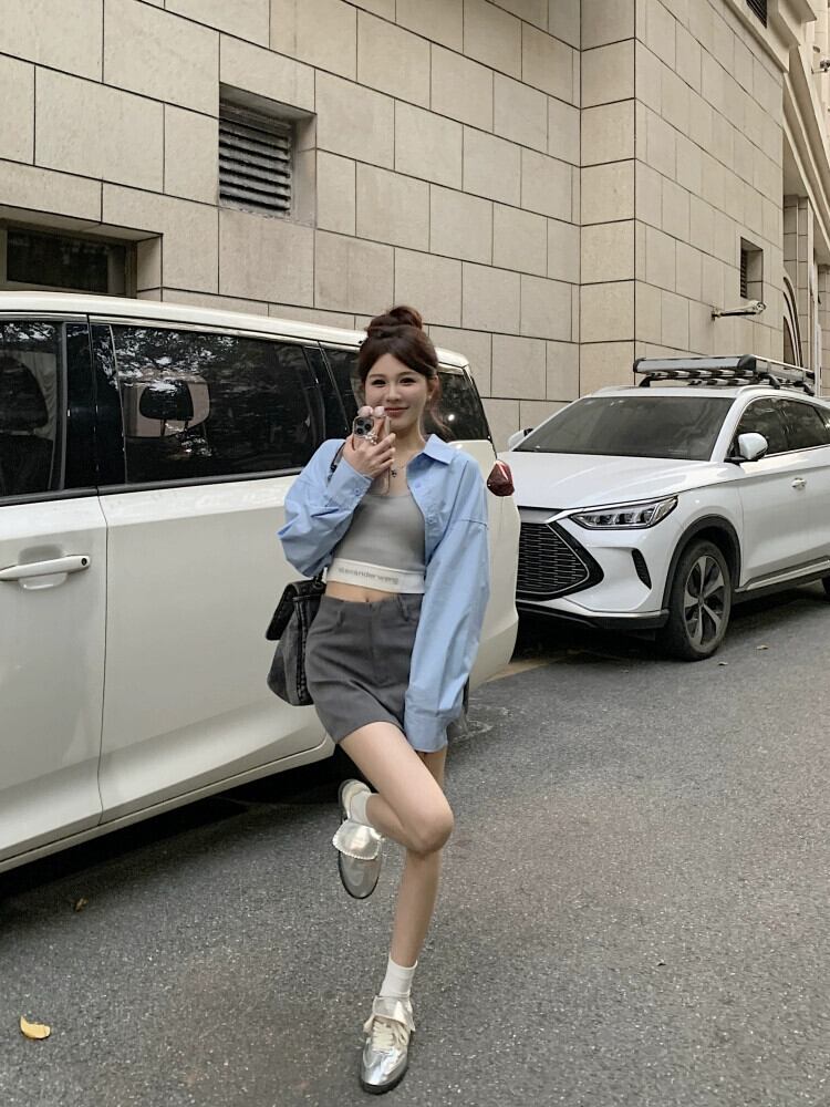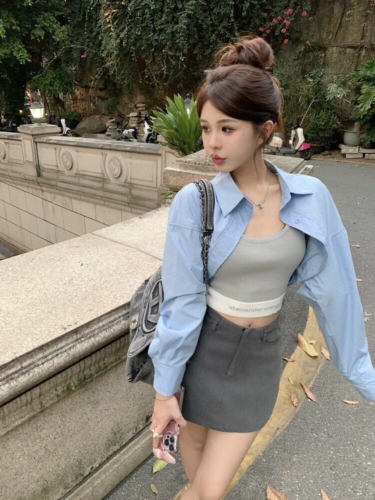 ホットショート長袖シャツ女性の2024年春の新デザインニッチ痩身シャツスタイルトップ ロング スプリング 春物 8571648900600056