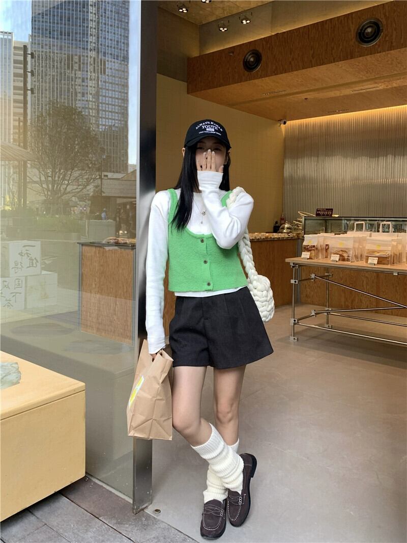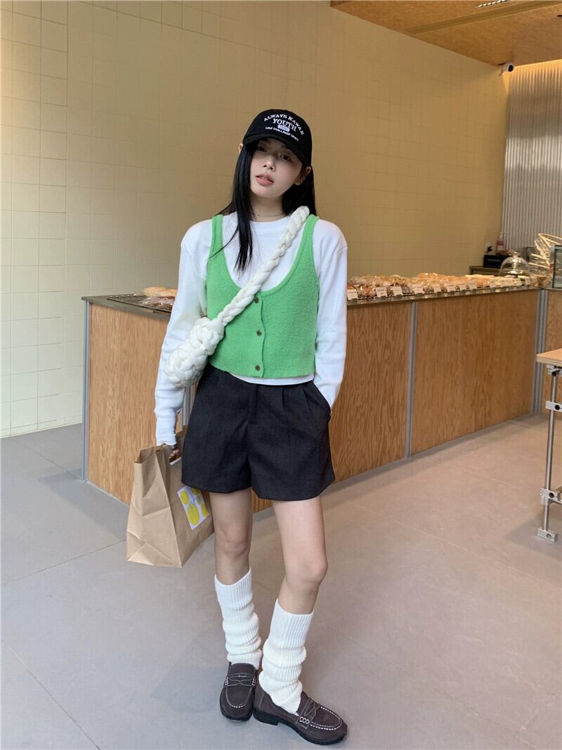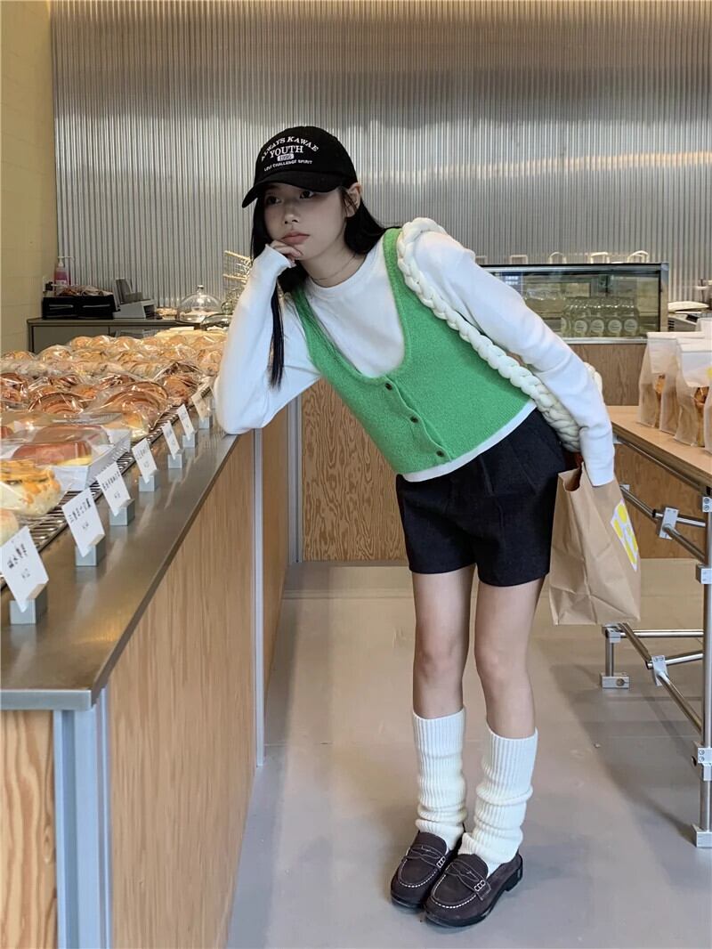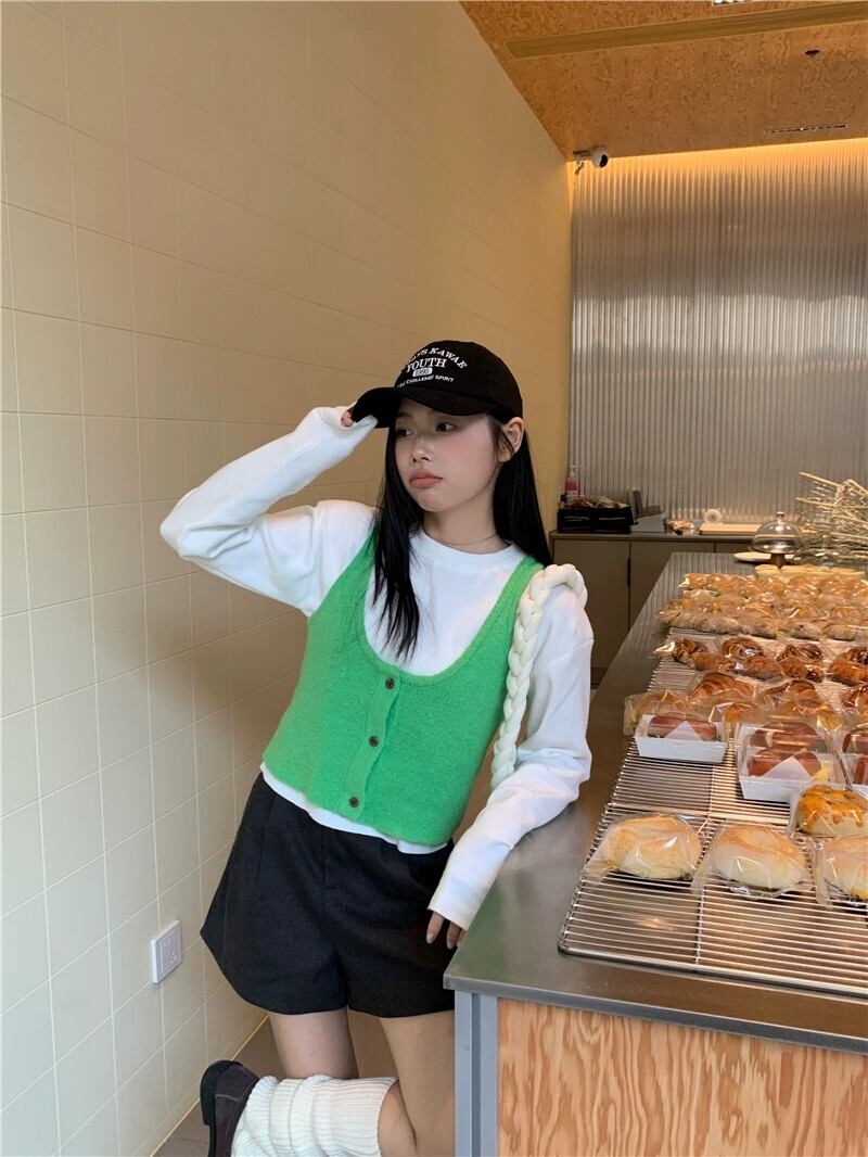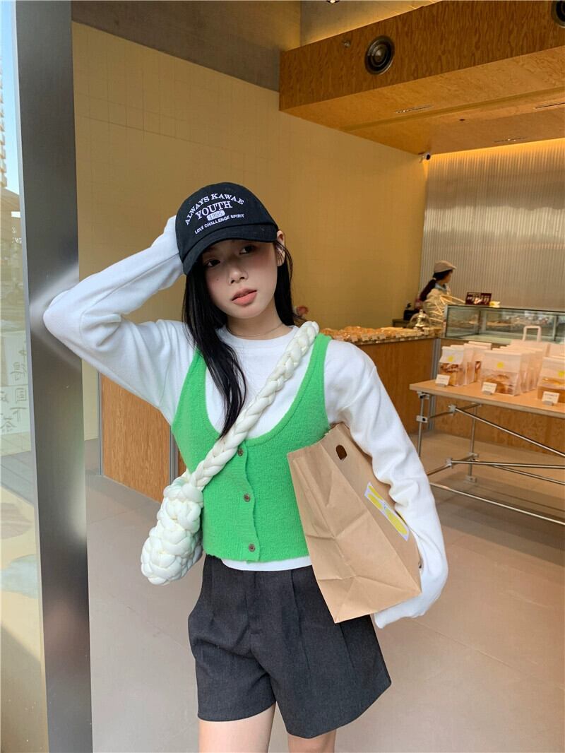 色:ホワイトボトミングシャツ,グリーンベスト