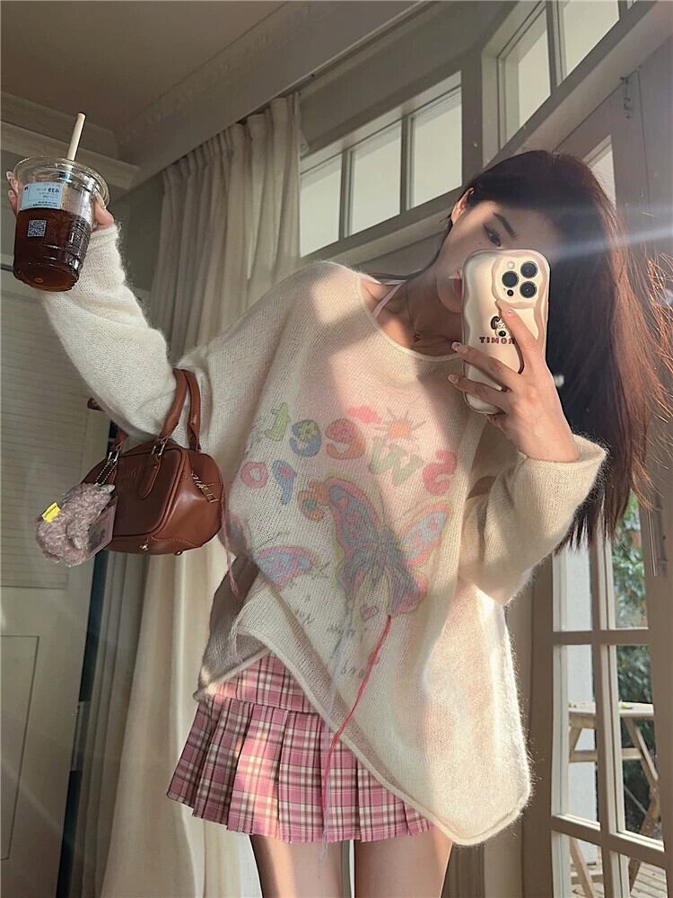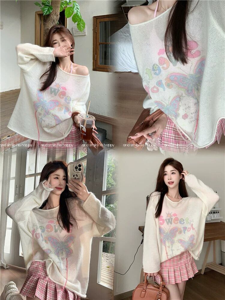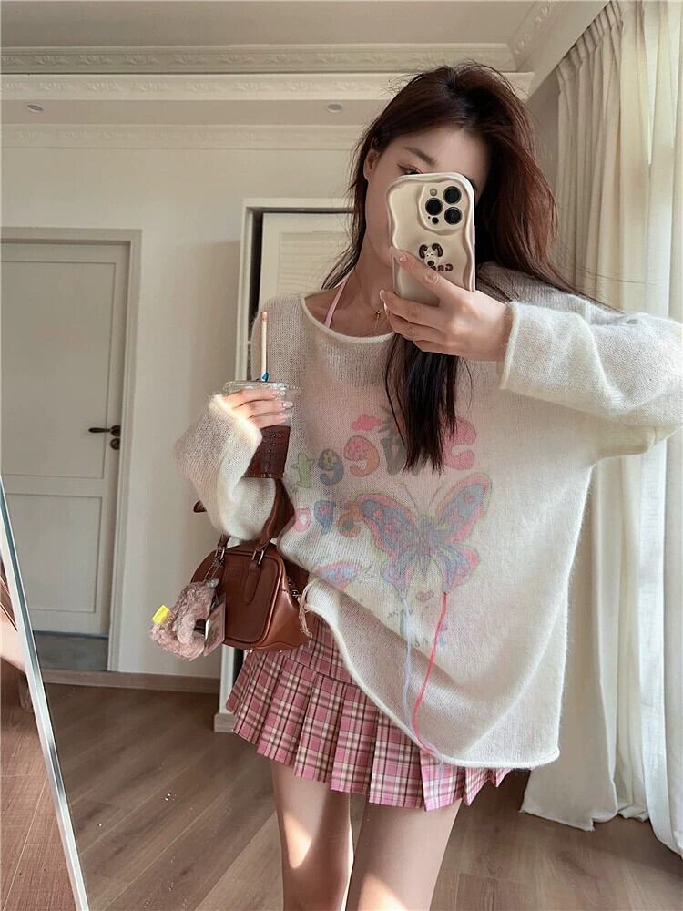 春のモヘアリボンセーターレディース、怠惰なスタイル、柔らかくワックスのようなルーズセーター、ミドル丈の優しいトップ スプリング 春物 8571630870501226