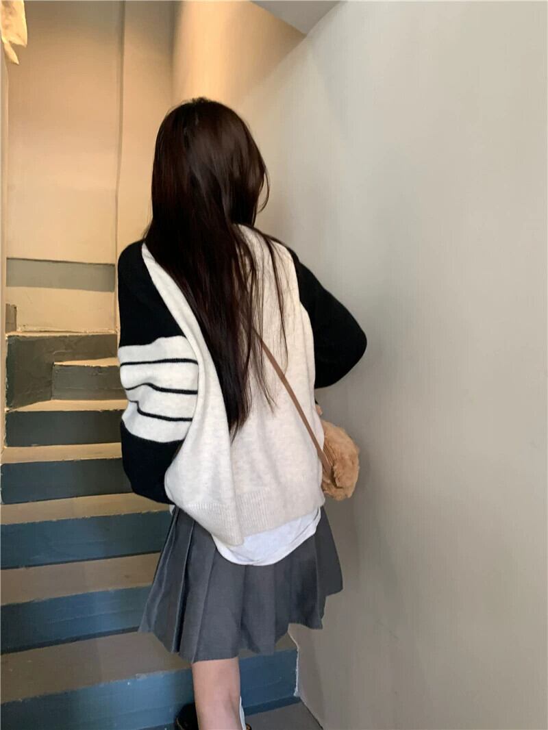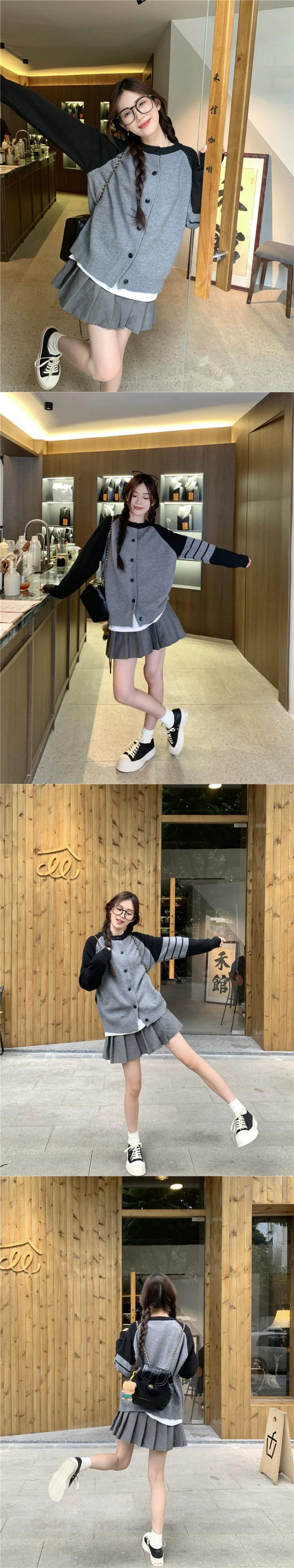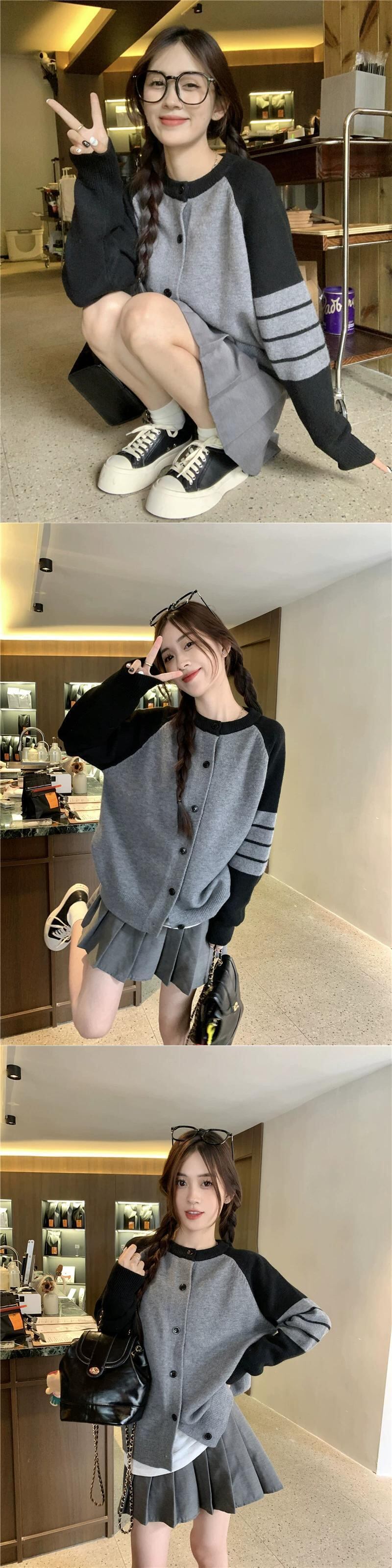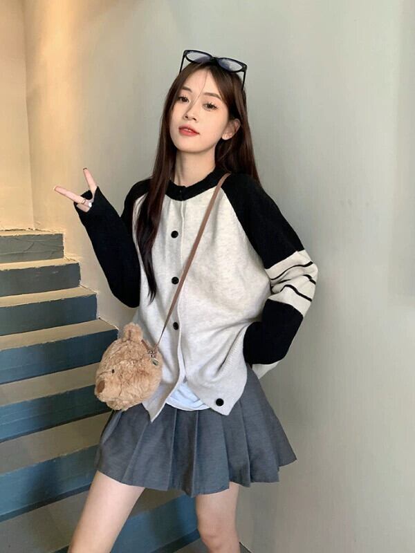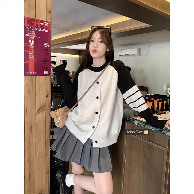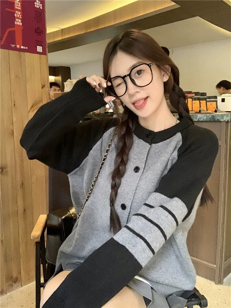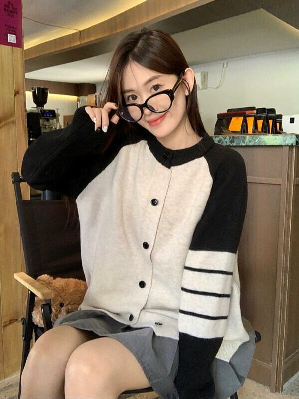 アメリカのコントラストカラーのニットカーディガン女性の 2024 年春の新バージョンルーズで多用途な痩身トップセータージャケット スプリング 春物 8571624485560279