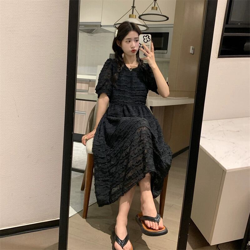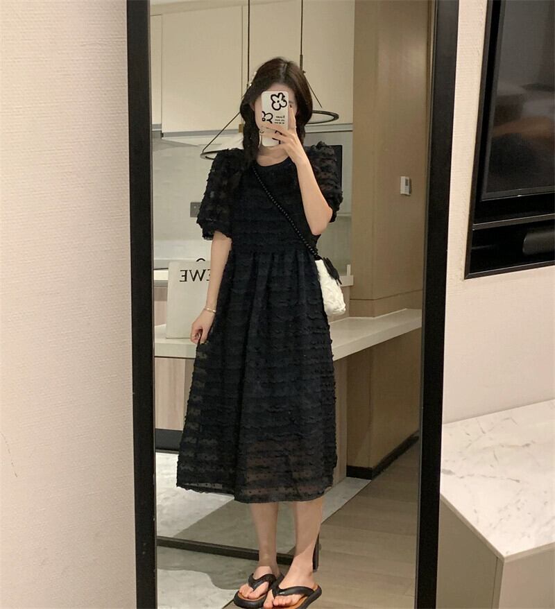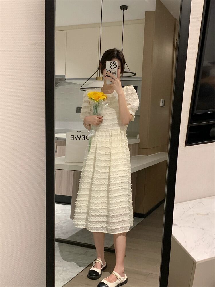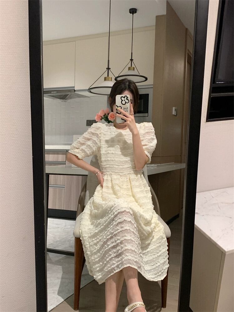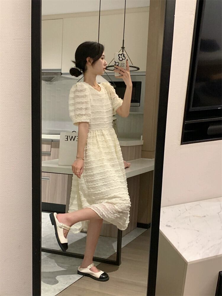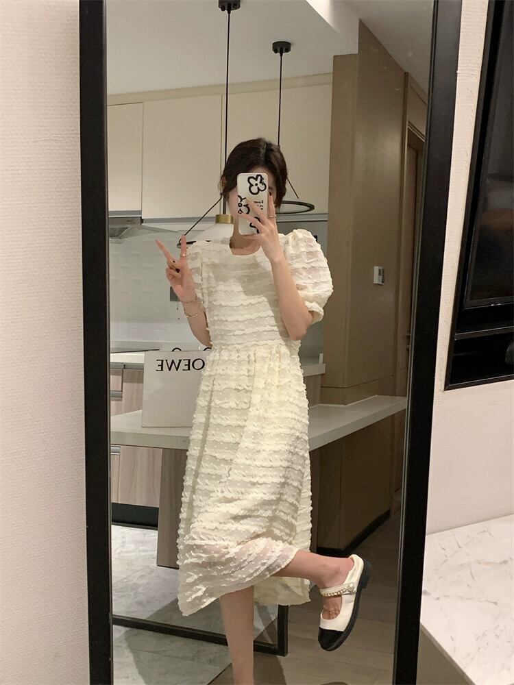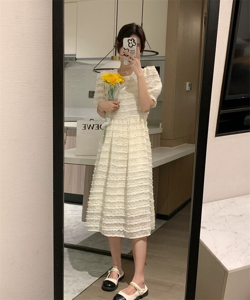 アプリコットドレスレディース2024年夏新スタイルハイエンドデザインニッチウエストパフスリーブロングスカート サマー 夏物 8571669757541194