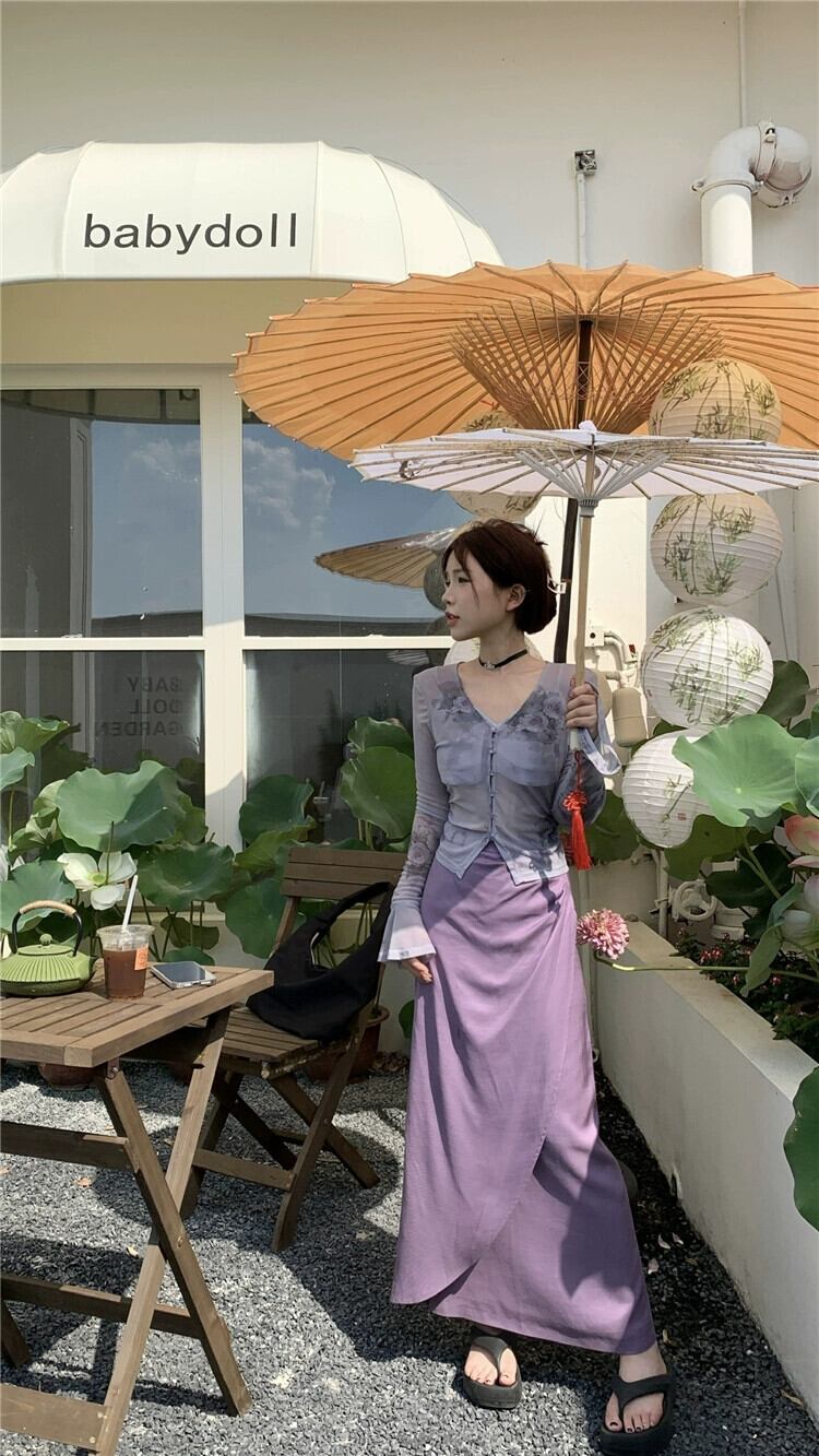 ローズ汚れ日焼け止めカーディガン女性の夏 2024 新しいレトロプリントトランペットスリーブ薄型空調シャツトップ サマー 夏物 8571698466115496