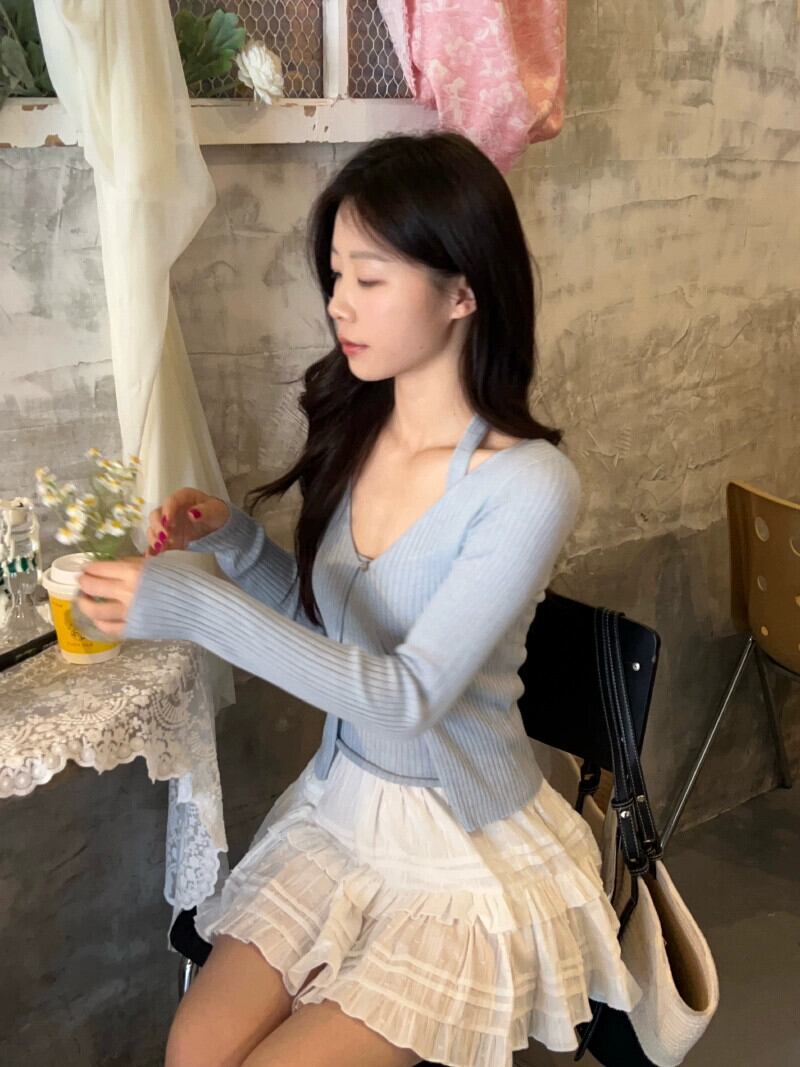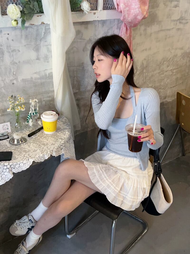 フランスのホルターネックセーター女性 2024 春の新デザインニッチインナーレイヤリングシャツスリム長袖トップ ロング スプリング 春物 8571619596278287