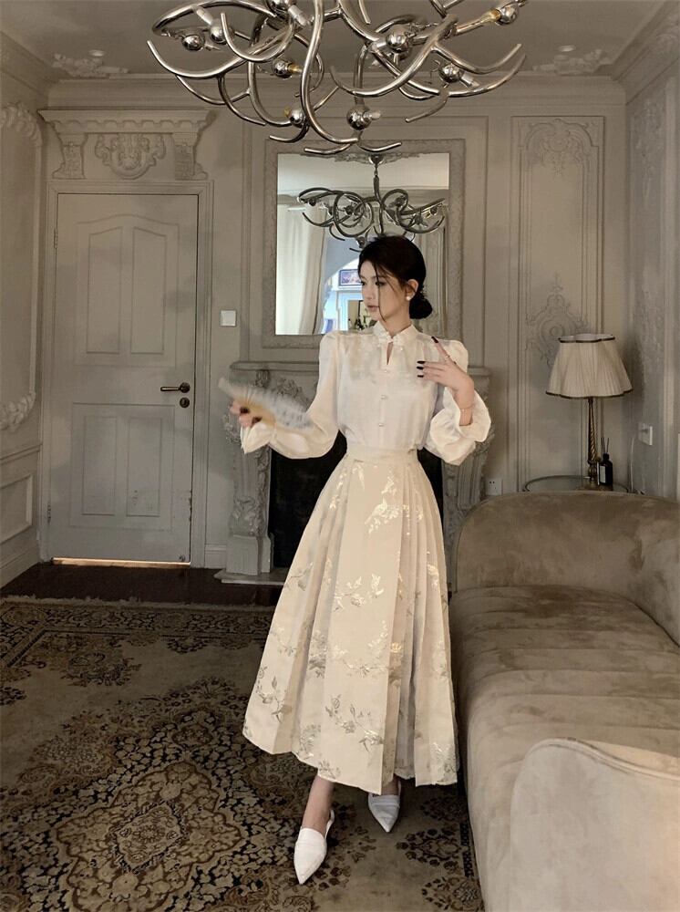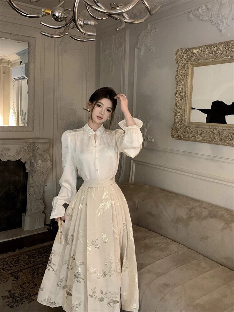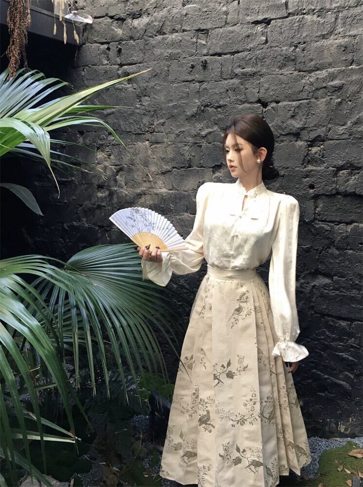 中国風国民風ジャカードスカート女性春 a ラインスカートプリーツスカートミッドレングスハイウエストスリム馬の顔スカート ハイウェスト スプリング 春物 Aライン 8571665207220610