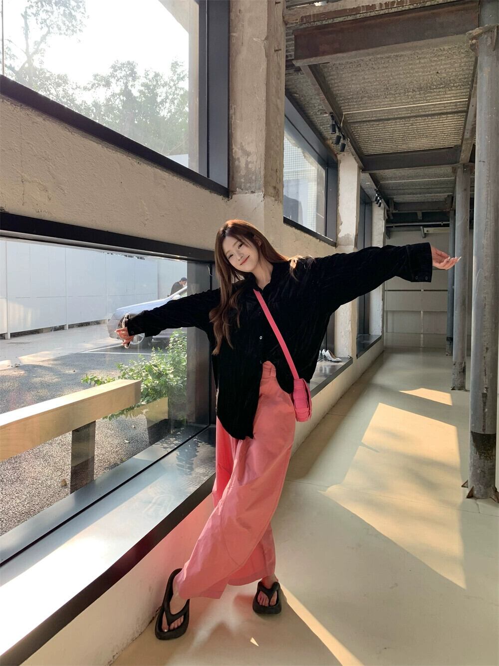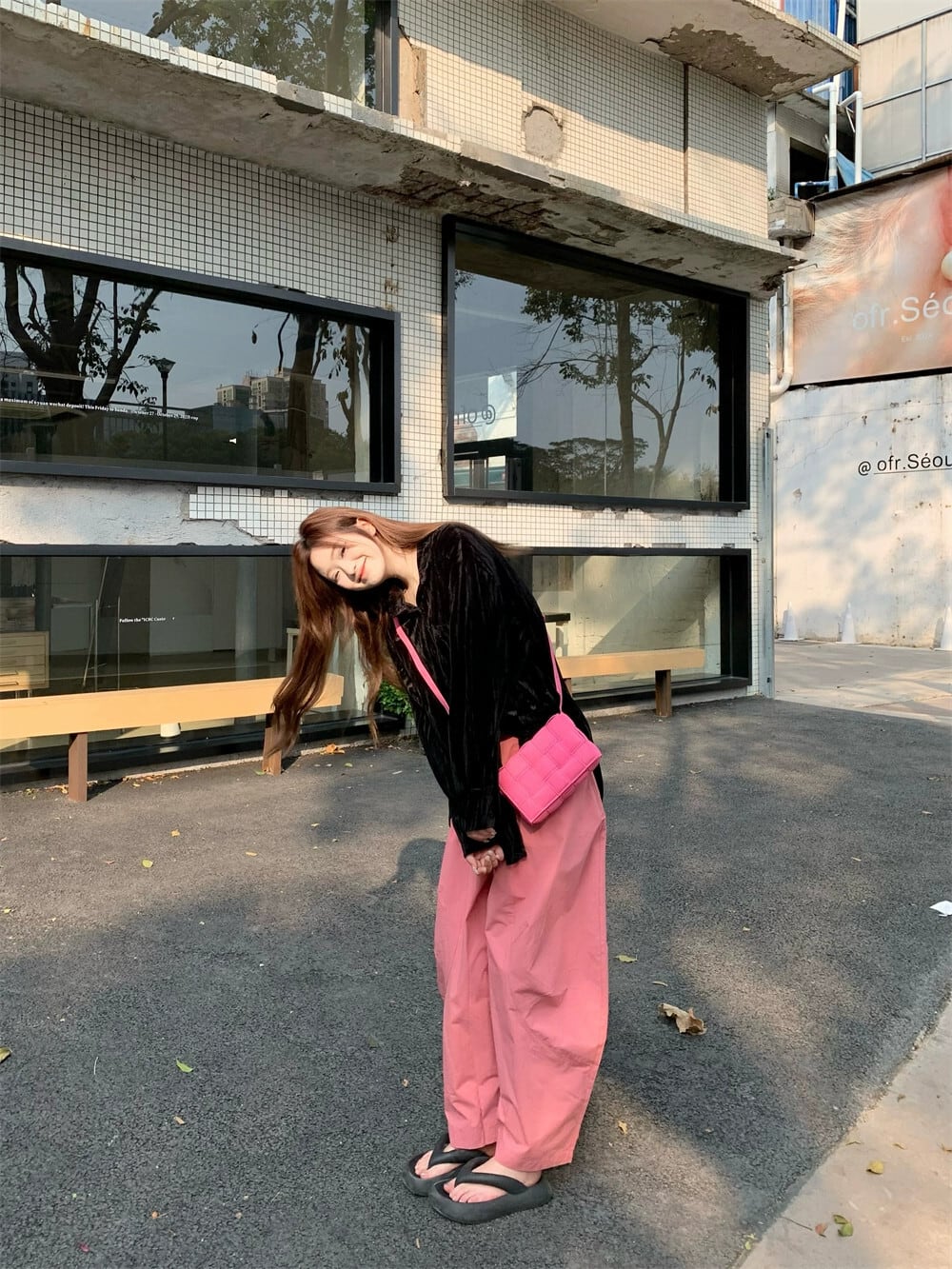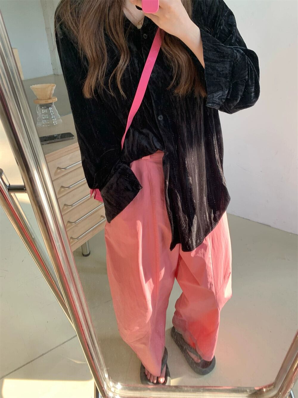 ルーズブルマ女性 2024 春の新ハイウエストワイドレッグパンツレトロキャロットパンツ 9 点パンツカジュアルパンツ スプリング 春物 ショーツ ブルマー 8571670429368649