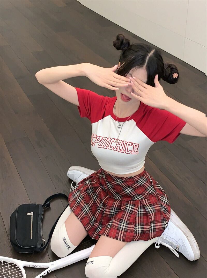ラグラン Tシャツの女性の夏 2024 新デザインニッチアメリカンレトロネクタイスリムフィット半袖トップ サマー 夏物 8571662340857232