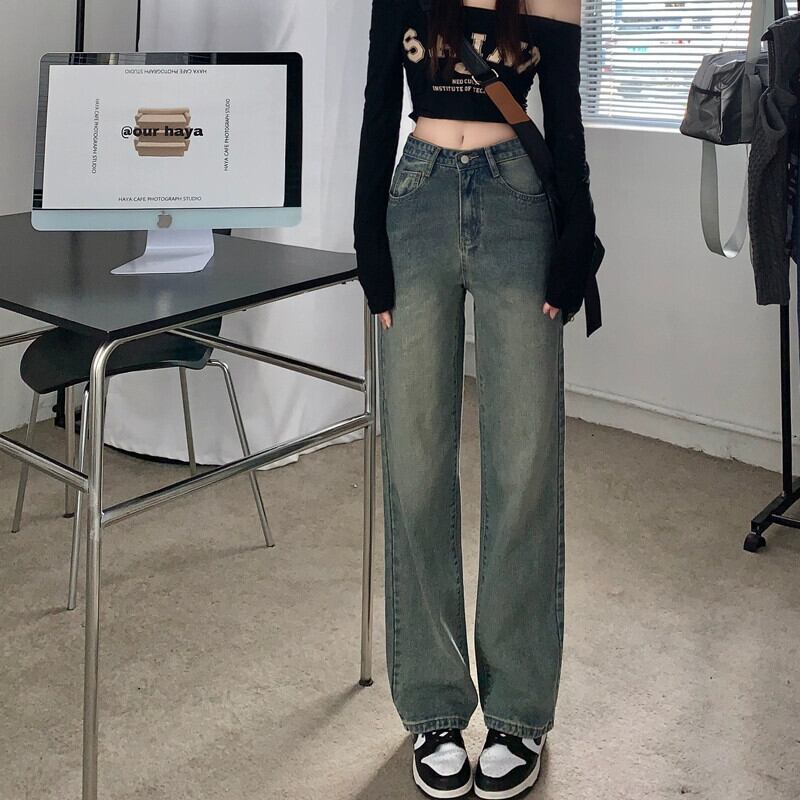 レトロジーンズ女性の秋と冬ナローワイドレッグパンツ 2024 ウエストスリム小さなルーズストレートパンツ オータム 秋物 ウィンター 冬物 ワイドパンツ 8571623428089754